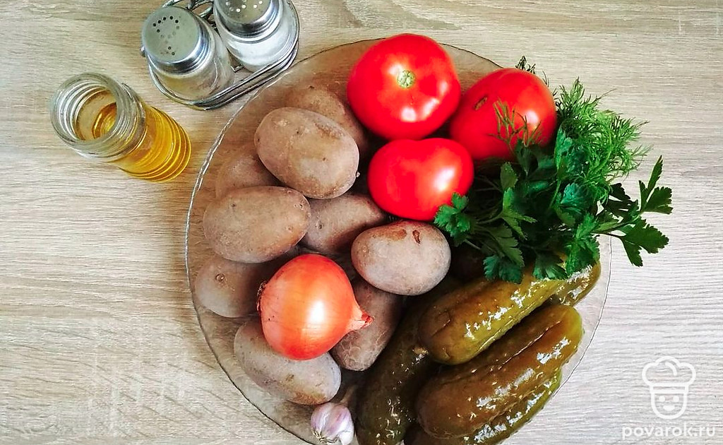 Домашние соленья — культ для русского человека. Многие уделяют этому процессу огромное количество времени и сил. Засолка продуктов — это старейший способ их сохранения. В небольших количествах, соленья помогают улучшить обмен веществ и налаживают процессы пищеварения. В них много витаминов и минералов, и, наконец, они очень вкусные. Сегодня рассмотрим рецепт приготовления салата из маринованных огурцов, отварного картофеля и помидор. Это пикантное блюдо, объединяет в себе вкус и свежих, и засоленных овощей. Обязательно попробуйте!