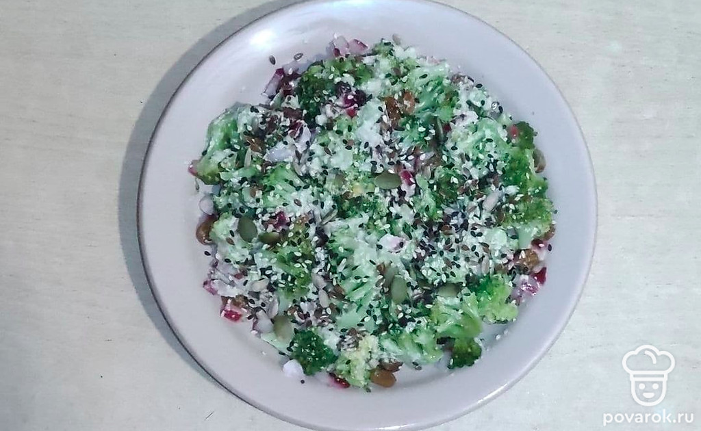 Брокколи— вид цветной капусты, чья популярность в мире постоянно растет. В пищу используются молодые стебли и бутоны овоща, а особенность приготовления такой капусты в минимальной тепловой обработке— так сохранятся все полезные свойства и витамины брокколи. Овощ идеально подходит для приготовления салатов, богатых витаминами и полезными аминокислотами. В сочетании с нежным и маслянистым вкусом орешков кешью, блюдо получится изысканным и питательным, не смотря на небольшое количество калорий.