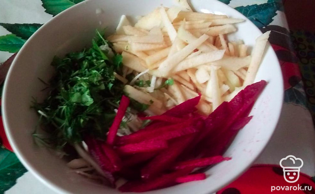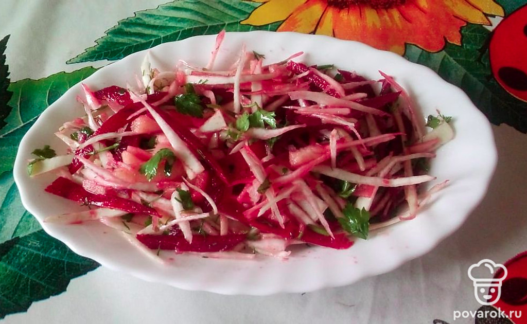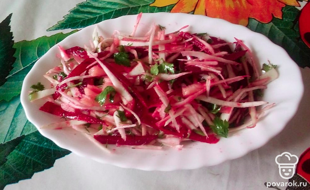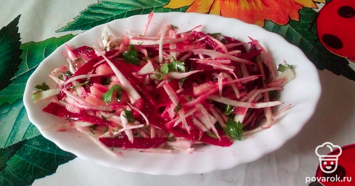 Это вкусный и полезный салат комбинирует в себе все возможные витамины! Отличный вариант для детей и тех, кто правильно питается. Готовится витаминный салат и быстро и просто!