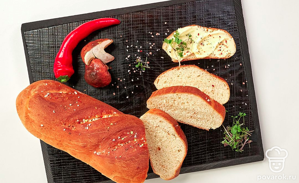 Французский багет сегодня пекут по множеству разных рецептов. Неизменной остается лишь его текстура — нежная и воздушная, с тающей во рту мякотью внутри и золотистой корочкой снаружи. Багет с молотым перцем чили прекрасно подойдет для любителей пикантных закусок. Специя добавляет хлебу необычайный аромат и легкую остроту во вкусе. Кстати, перец чили способен вызвать выработку эндорфинов, сделав человека счастливее.