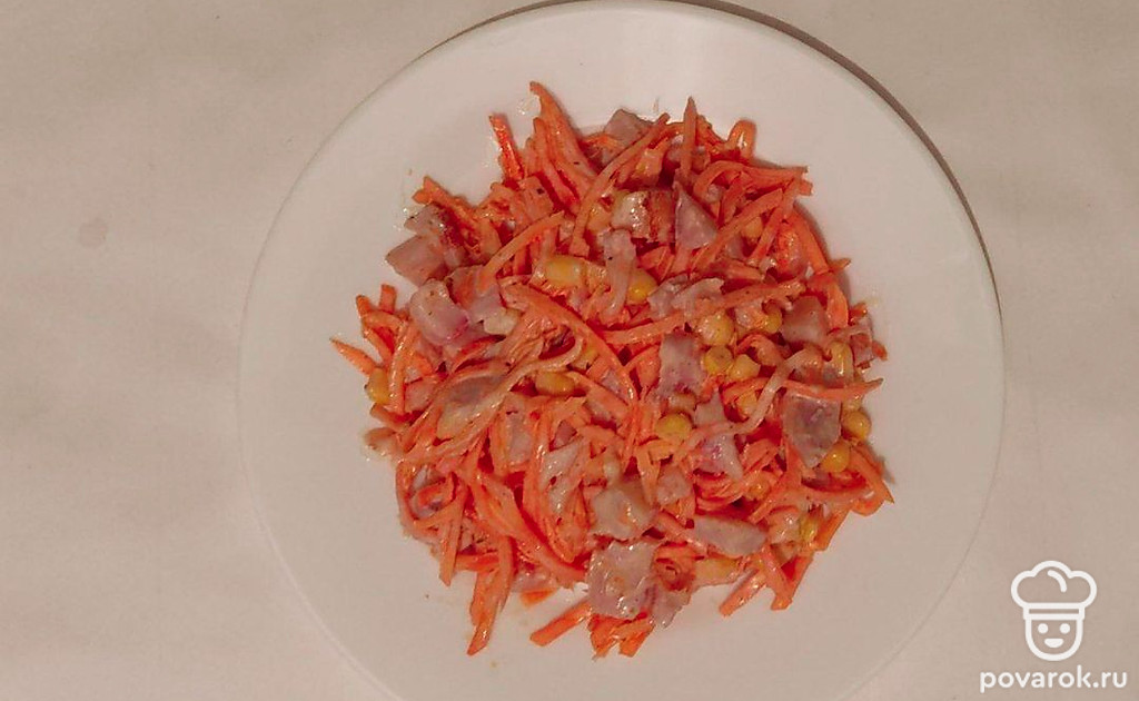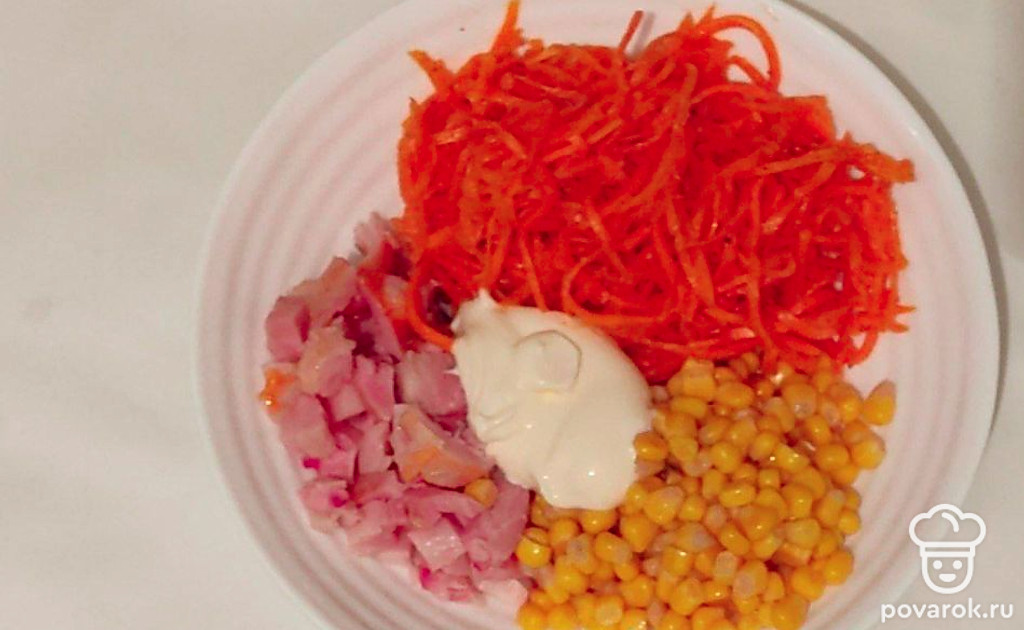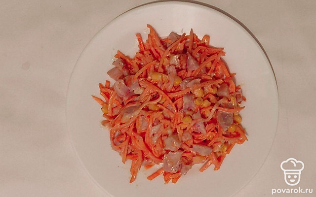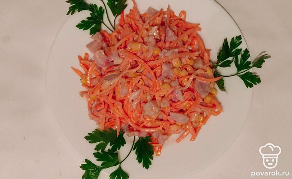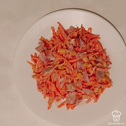 Корейскую морковку любят многие. Она вкусная даже, если просто подать ее на стол, как закуску. Но салат из корейской морковки и кукурузы станет для вас новым открытием. Он украсит своей яркостью любой праздничный стол.