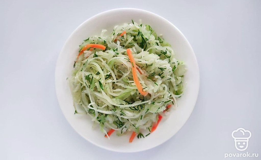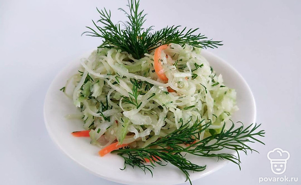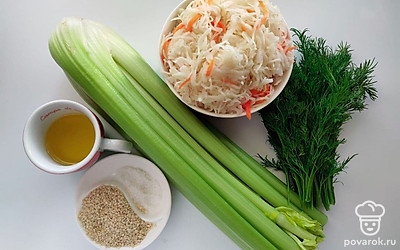Квашеная капуста — это уникальный продукт, во время ее приготовления проходит процесс ферментации и в ней развиваются полезные для пищеварения бактерии. Сельдерей не менее полезен для желудочно-кишечного тракта, так как в нем содержится огромное количества клетчатки. А салат из этих двух ингредиентов — это блюдо с отличным вкусом и минимальным количеством калорий.
