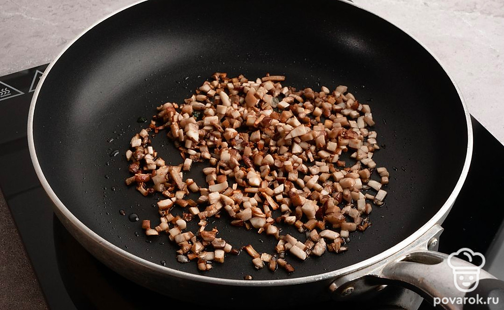 В разогретой сковороде не небольшом количестве растительного масла обжарьте шампиньоны.