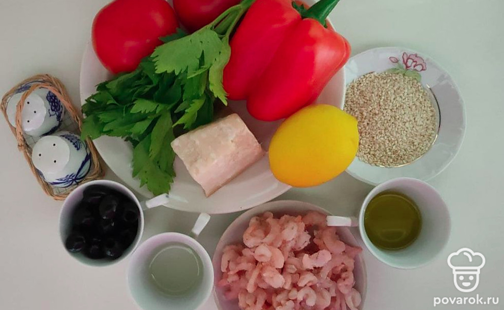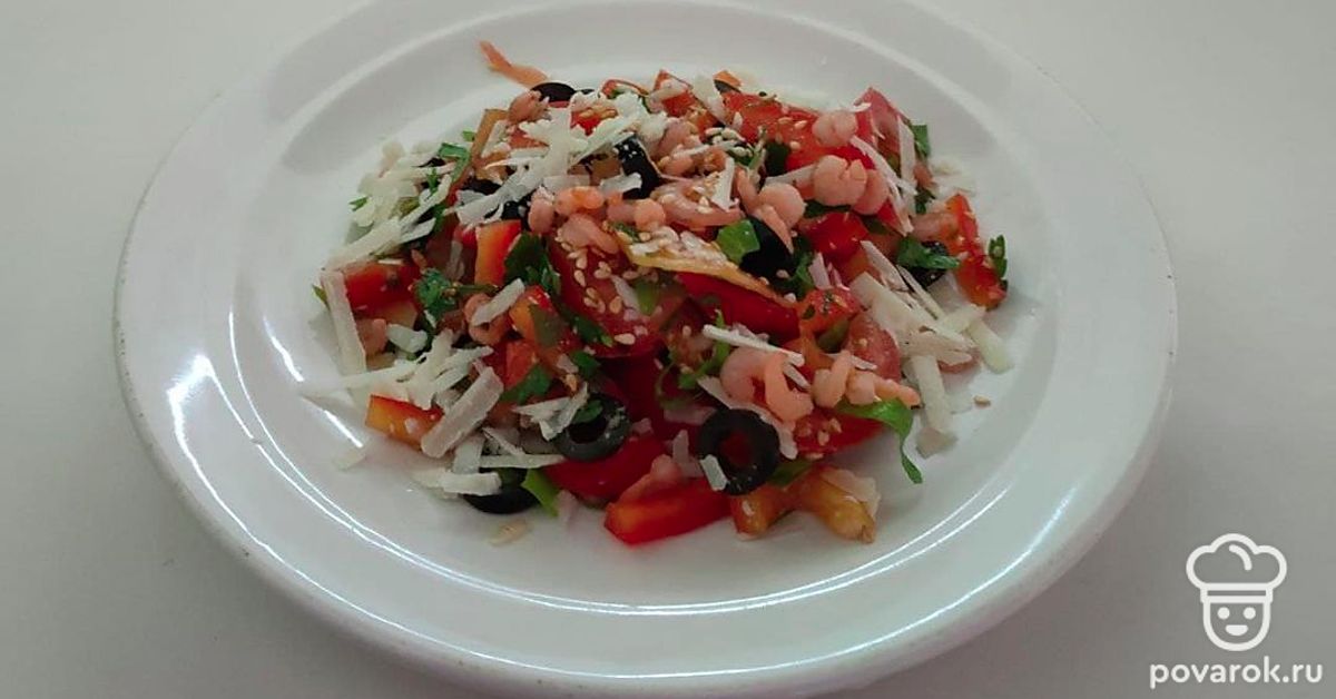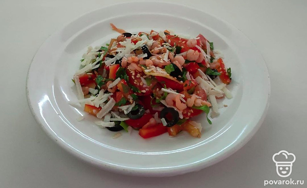 Легкий салат с креветками и овощами