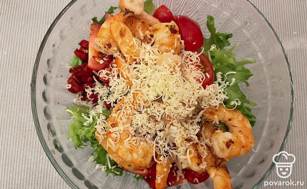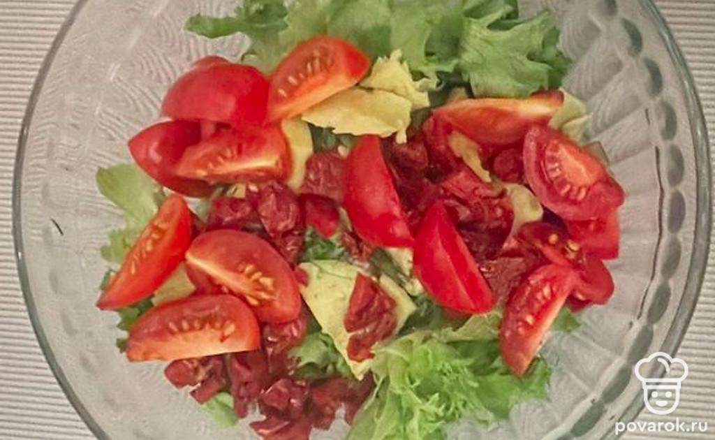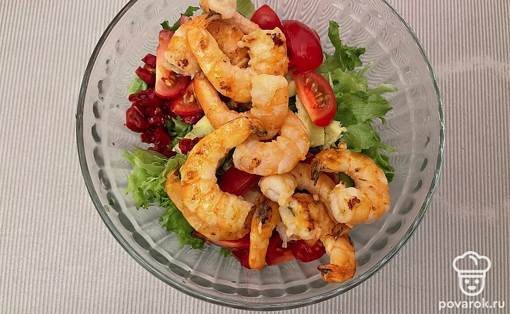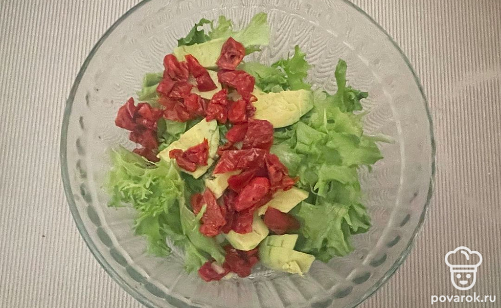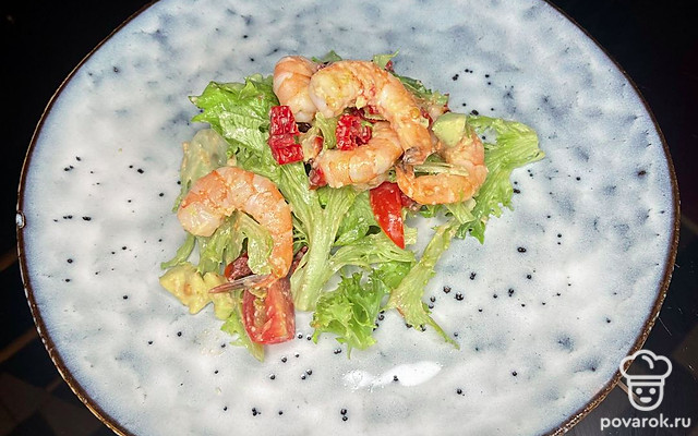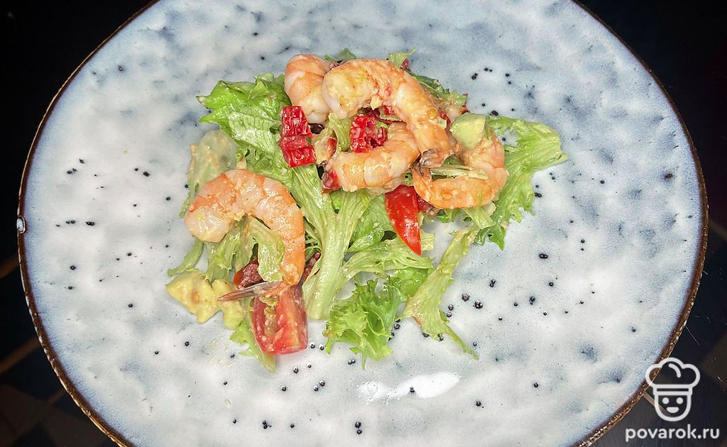 Салат с креветками, авокадо и вялеными томатами