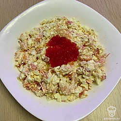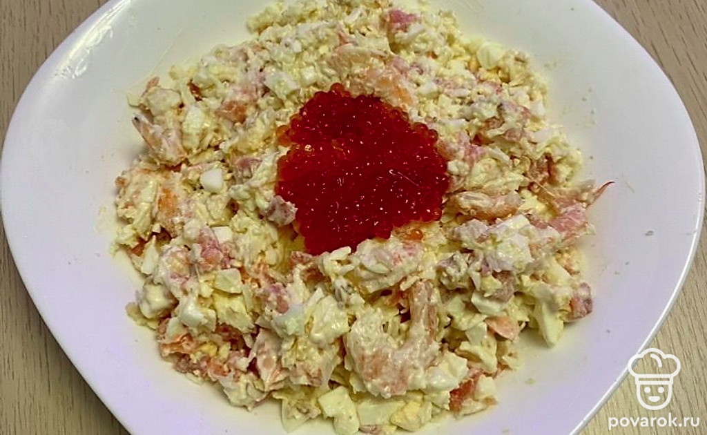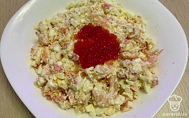 Перед подачей украсьте наш салат красной икрой. Приятного аппетита.