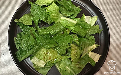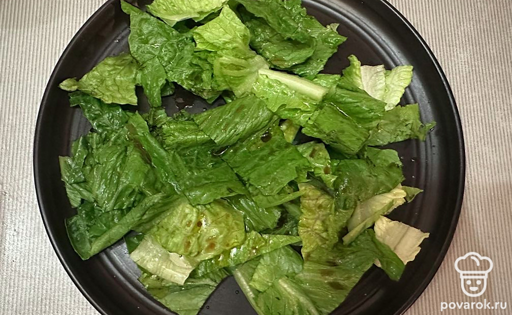 Листья салата романо помойте, просушите. Нарежьте на крупные куски. Добавьте оливковое масло и бальзамический уксус по вкусу. Перемешайте.