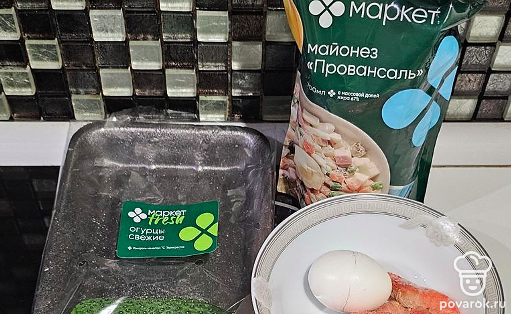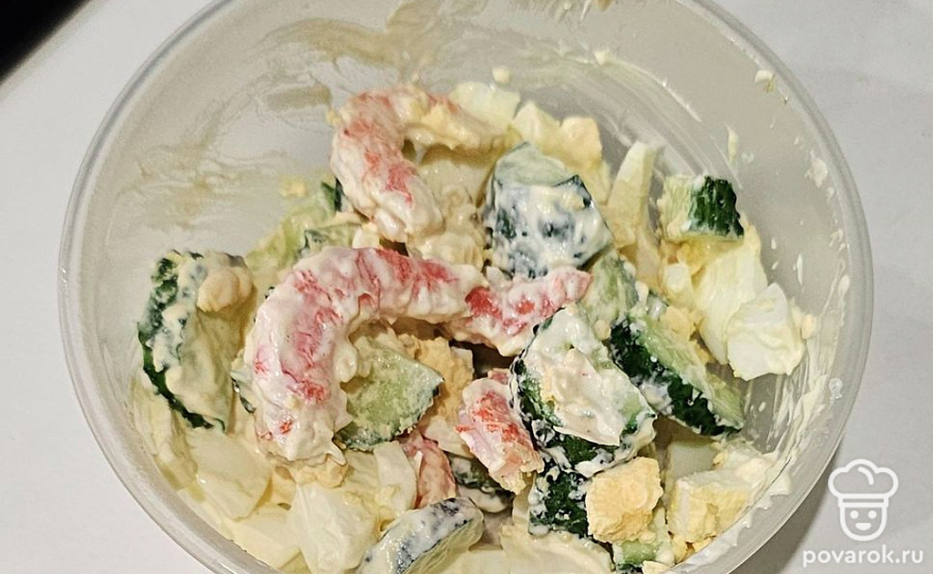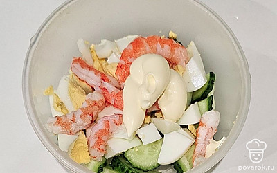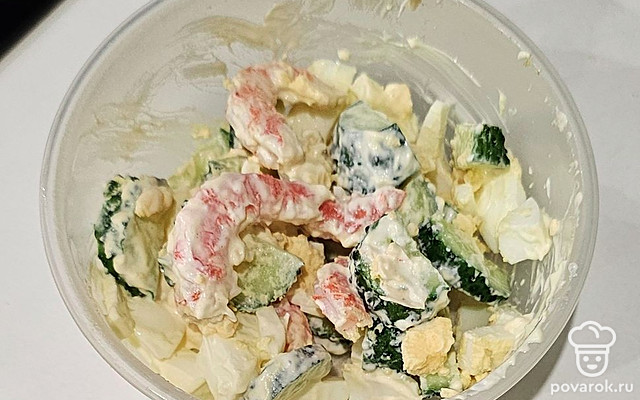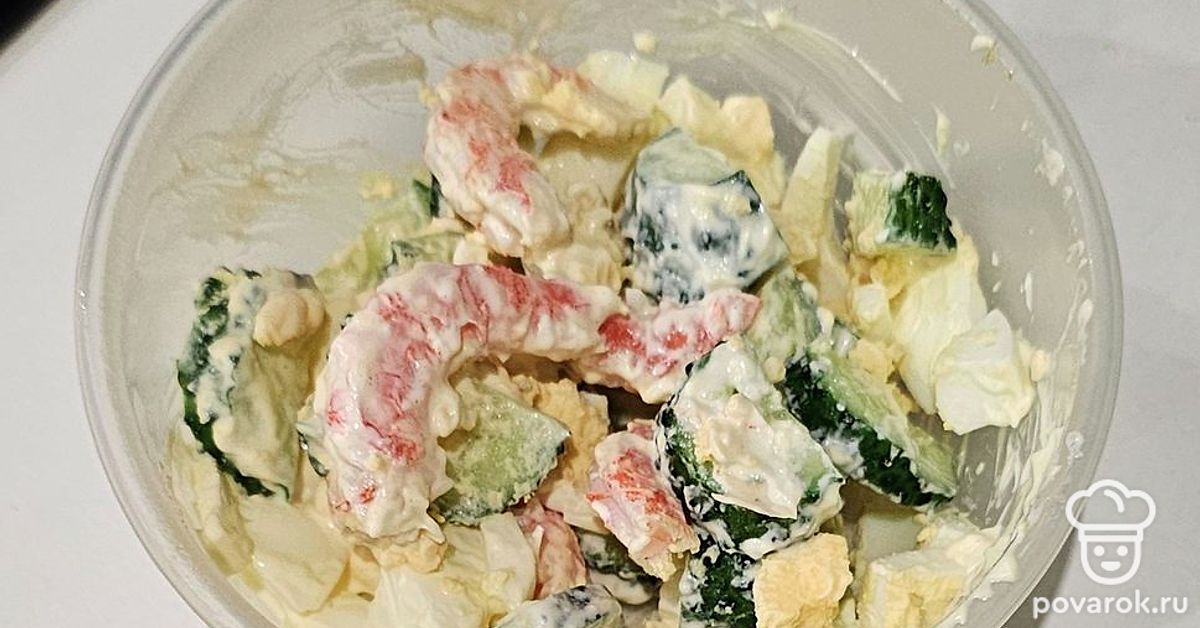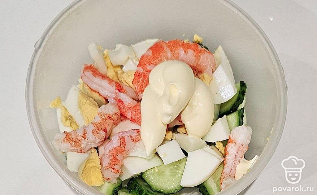 Салат с огурцом и креветками