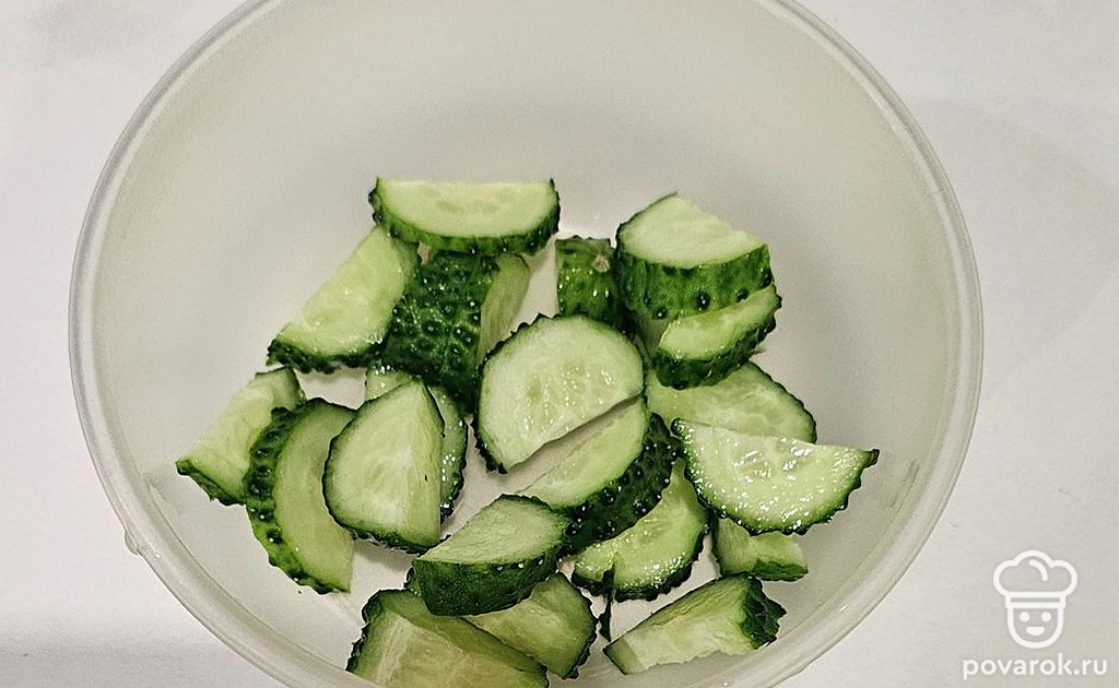 Огурец нарежьте.