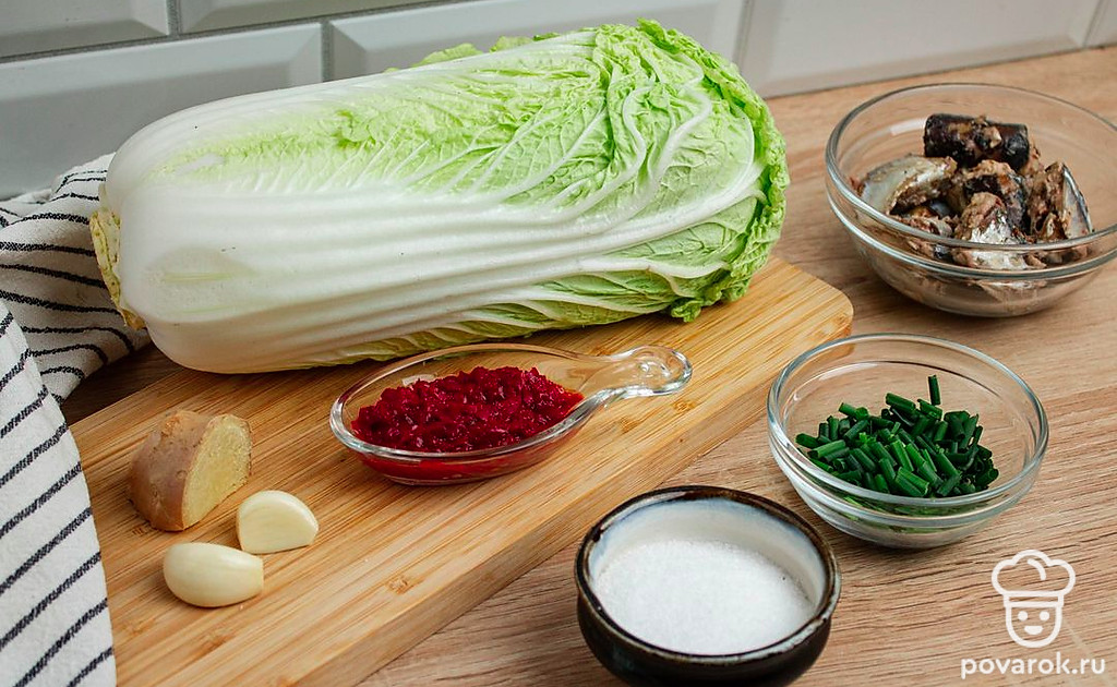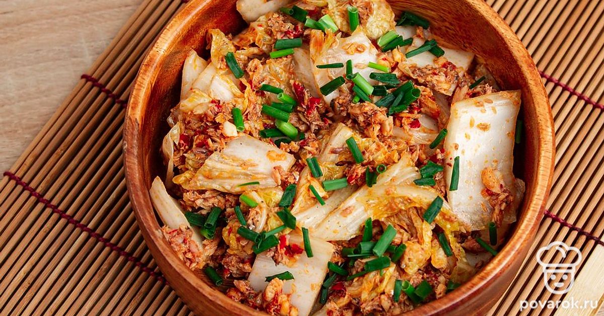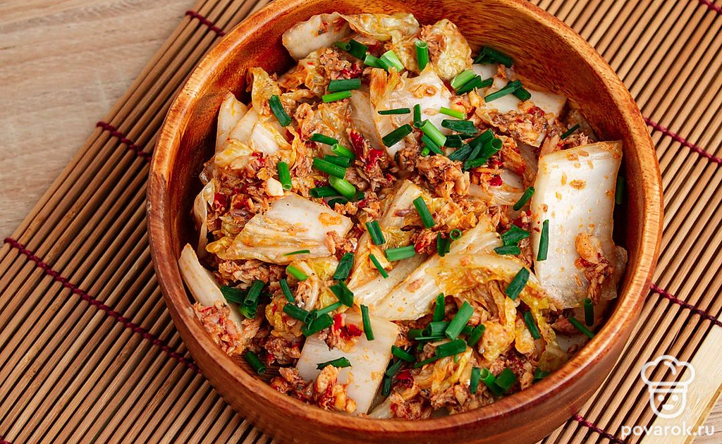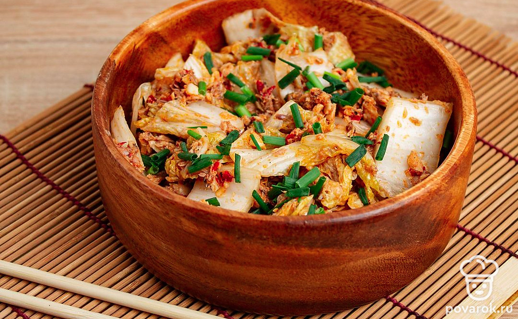 Острая закуска кимчи пробуждаешь аппетит. А в сочетании с сайрой это блюдо точно не пробовал никто из гостей, так что этот рецепт — отличная возможность удивить друзей и семью кулинарными изысками. Кимчи — традиционное корейское блюдо, состоящее из квашенных овощей приправленных острым соусом. Блюдо станет отличной закуской для любого крепкого напитка, также блюдо по достоинству оценят любители пикантного вкуса. Существует множество вариантов кимчи, мы же предлагаем вам приготовить нетривиальный с сайрой. Вкусно и просто!