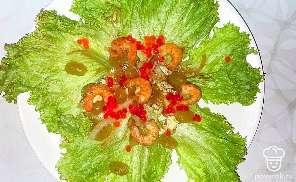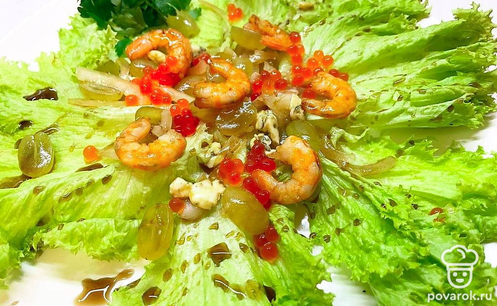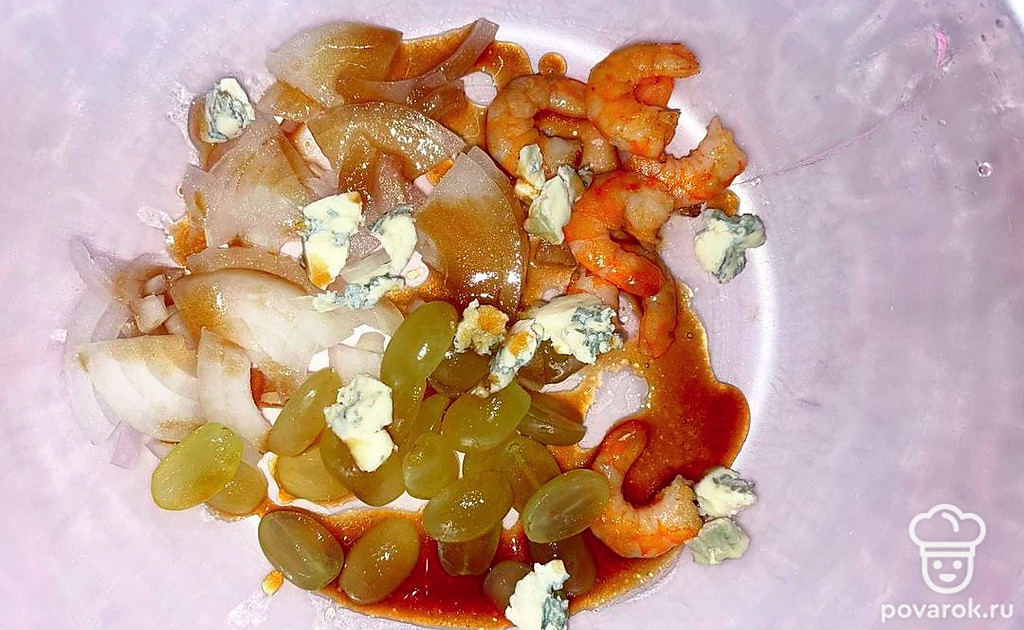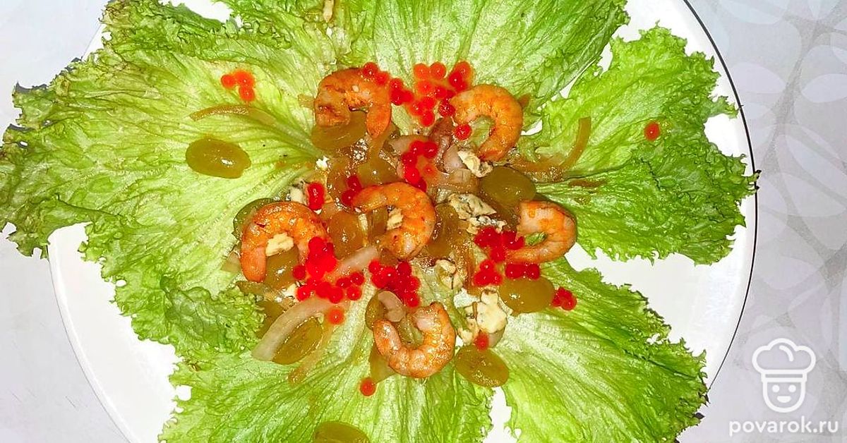 Сыр дорблю это один из самых знаменитых сыров, который корнями уходит в Германию. Сыр не только очень красивый, но и полезный. Дорблю повышает иммунитет и улучшает функцию памяти. Салат в состав которого входит дорблю, креветки и виноград получается очень вкусным и полезным.