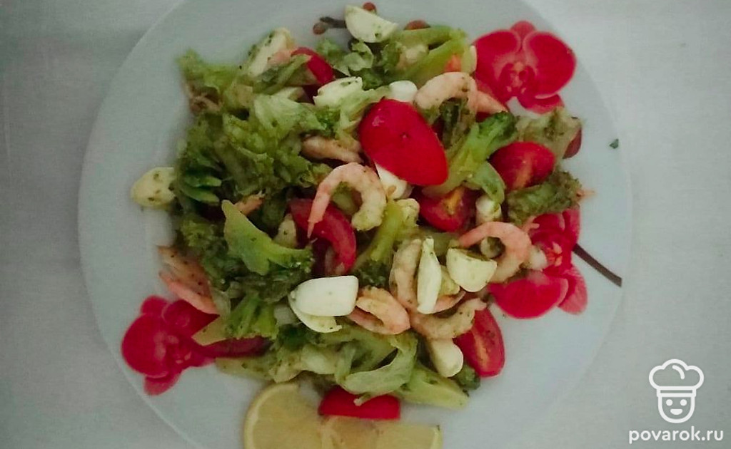 Салат с брокколи, креветками, помидорами черри и моцареллой — великолепный, красивый, легкий и полезный праздничный салат, который готовится легко и быстро, а съедается за считаные минуты. Он станет настоящим украшением стола, а с его приготовлением справится даже неопытный кулинар.