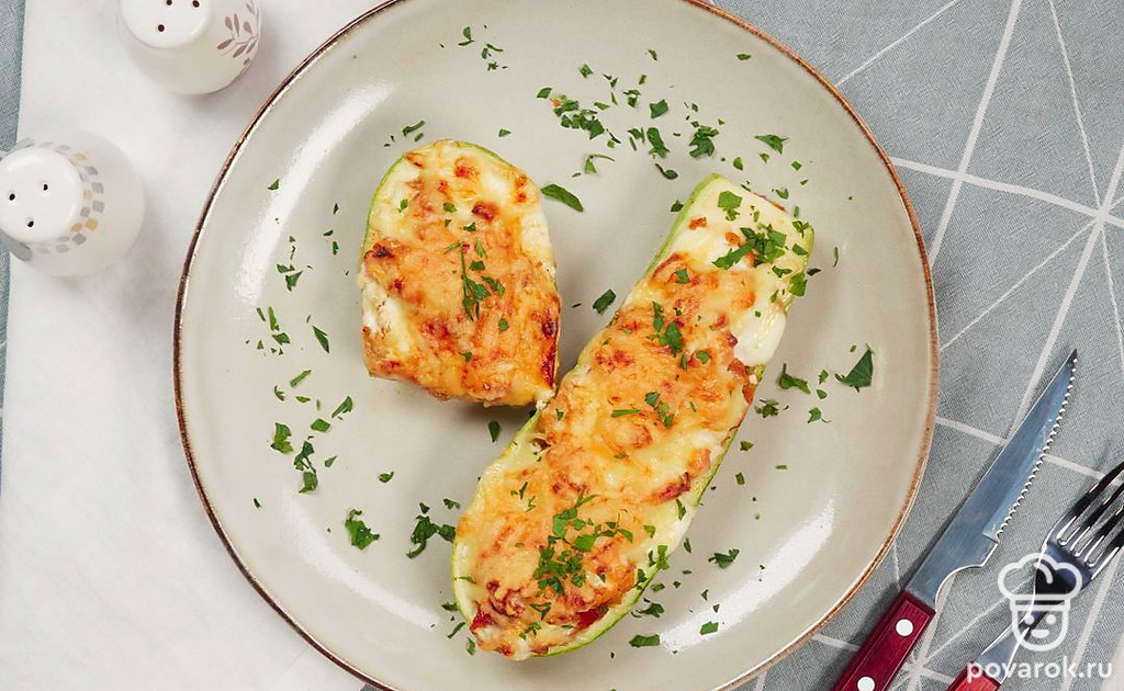 Если хочется сделать свое питание более здоровым и включить в повседневное меню больше блюд из овощей, то стоит обратить внимание на рецепты с кабачками. Этот богатый витаминами и клетчаткой овощ прекрасно сочетается с мясом и сыром, грибами и зеленью, часто кабачки тушат с другими овощами. Но чтобы сотворить из них настоящий деликатес, попробуйте нафаршировать кабачки овощной начинкой и запечь в духовке под горячей шапочкой из расплавленного сыра.