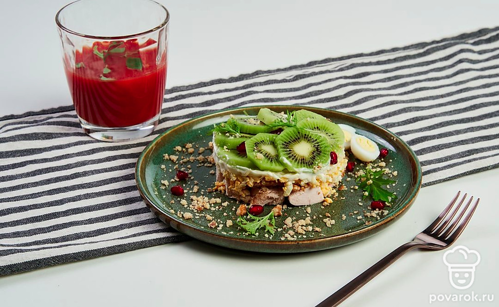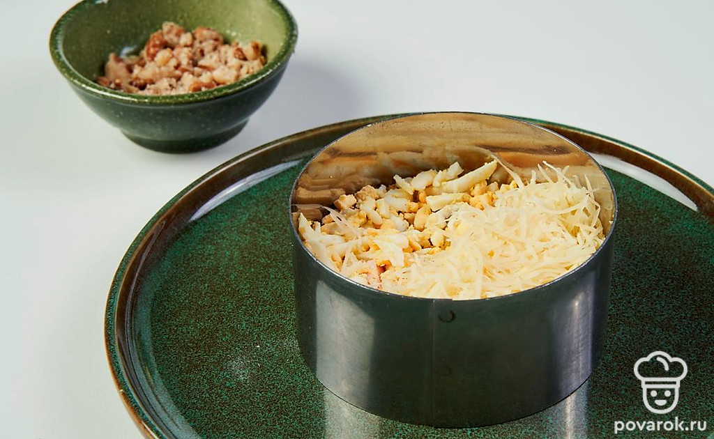 Салат «Нежность» имеет немало вариаций. В одну их них включаются грецкие орехи. Диетологи часто говорят про их полезное воздействие на организм и включают их в списки самых ценных продуктов. Согласно одной из легенд, о потрясающем влиянии грецких орехов на работу мозга знали еще в Древнем Вавилоне. Жрецы даже не разрешали их есть простым людям, не желая, чтобы последние стали слишком умными. А на Кавказе и сегодня дерево грецкого ореха почитается как священное.