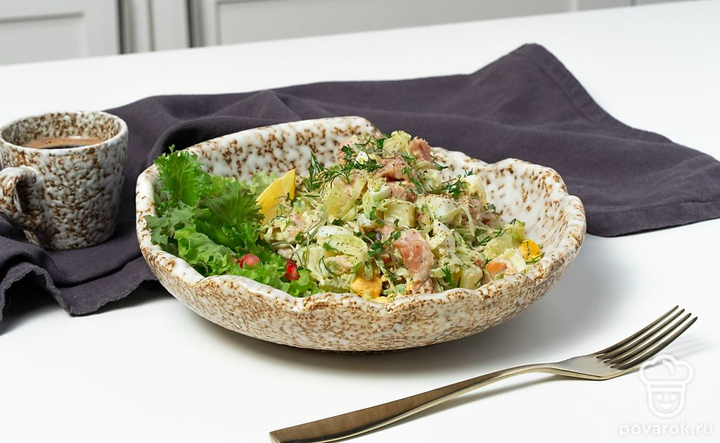 Салат с курицей и зеленой редькой