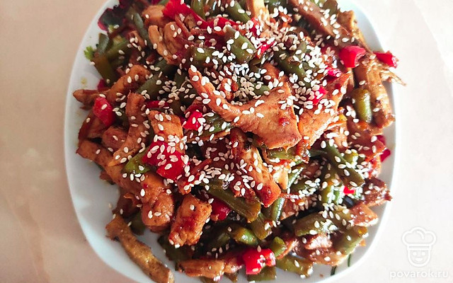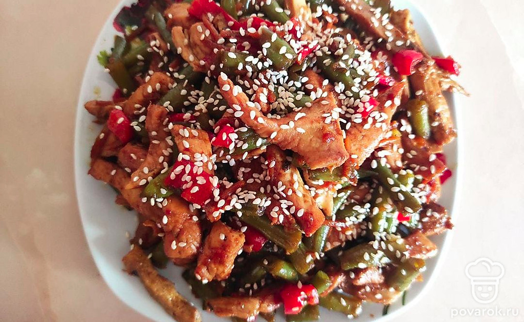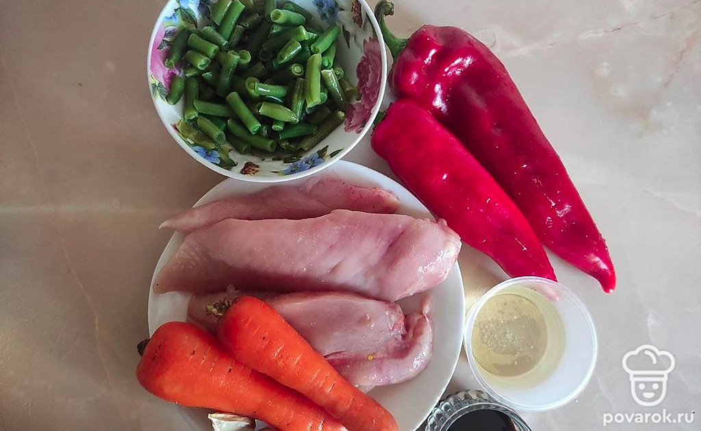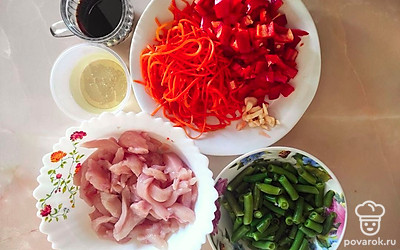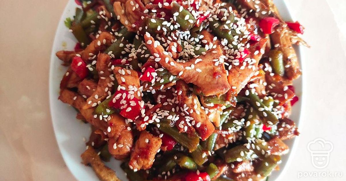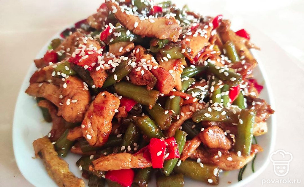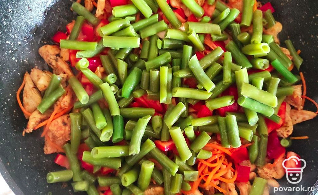 Приготовление, будь то экзотического блюда или повседневного обеда, доставляет удовольствие всем хозяйкам. Каждая хочет впечатлить семью и гостей чем-то изысканным. Для того чтобы все были сыты и довольны вам стоит обратить внимание на этот рецепт. Он сочетает в себе куриное мясо, стручковую фасоль, морковь, острый перец чили и приятную заправку в виде соевого соуса и чеснока.