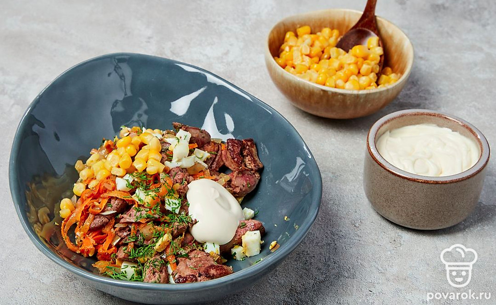 Существует множество вариаций салата с куриной печенью. Этот рецепт поможет приготовить быстрый и вкусный салат на закуску. Несмотря на простоту приготовления, блюдо является сытным и питательным. Печень содержит большое количество железа, витаминов и минералов. Из-за значительного количества белка она рекомендована тем, кто находится на диете или занимается спортом. Также печень улучшает работу пищеварения и щитовидной железы.