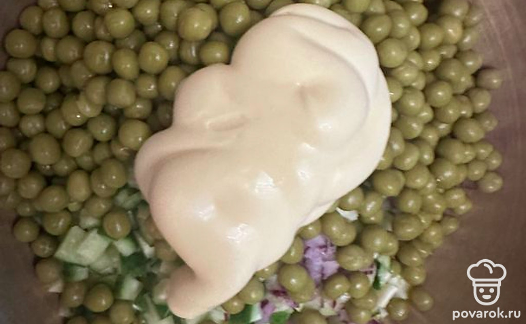 Добавьте майонез и соль по вкусу. Хорошо перемешайте.