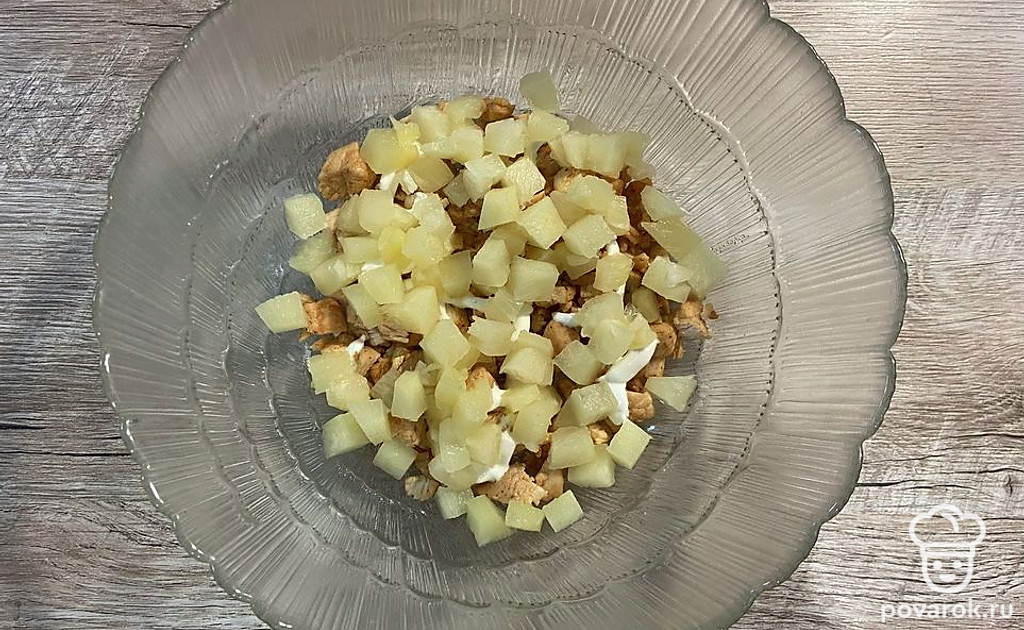 Этот салат сочетает в себе соленое и сладкое, что кажется невероятным. Но тандем курицы и ананаса — одно из самых удачных сочетаний. Такой салат украсит любой стол.
