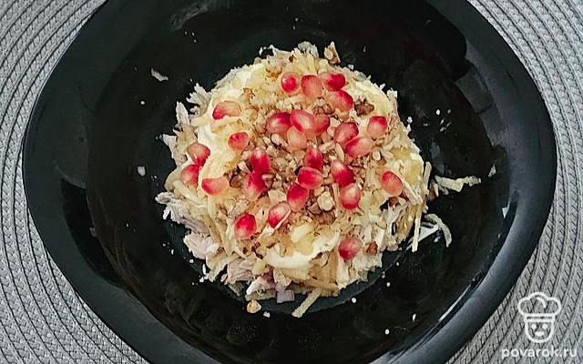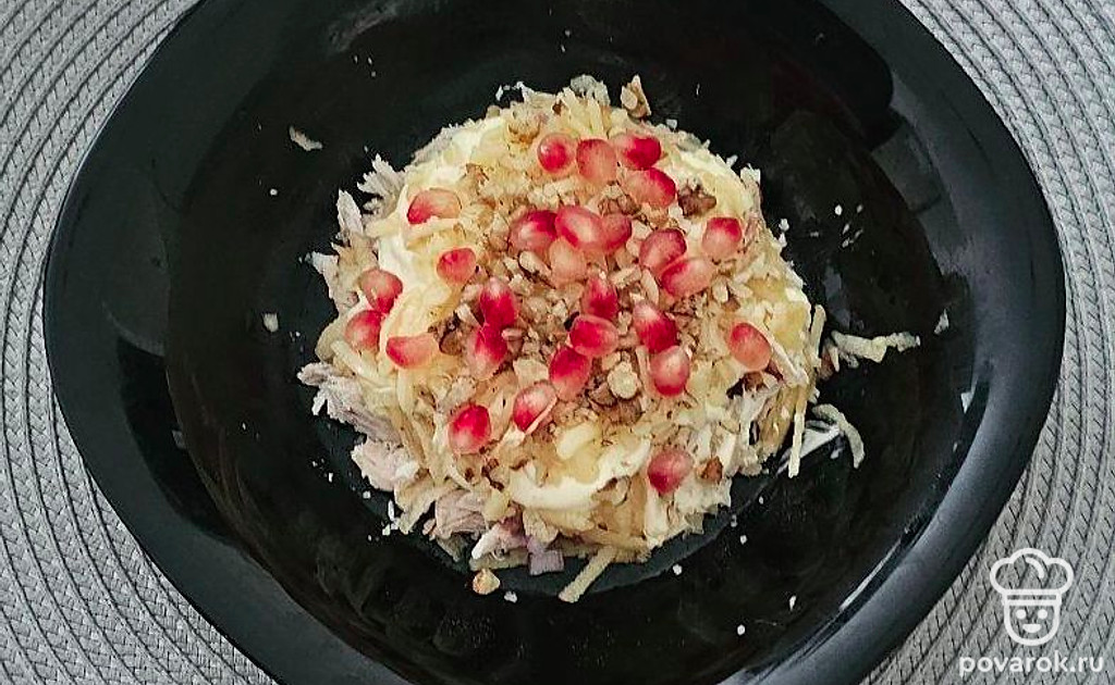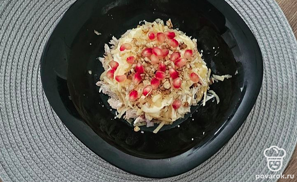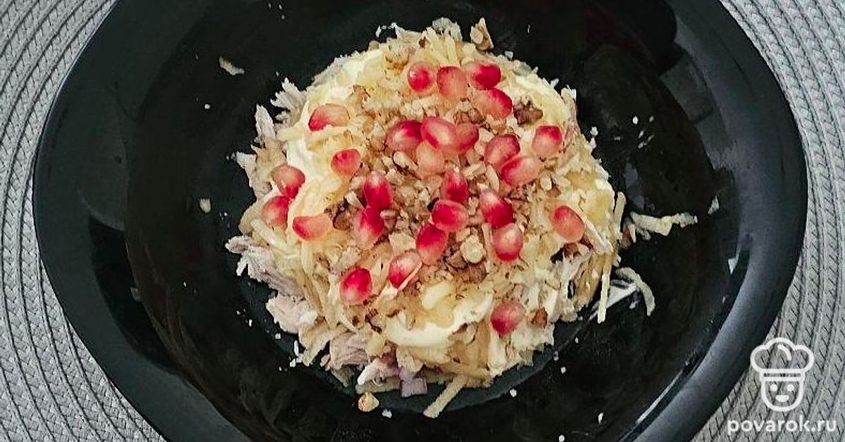 Вкуснейший салат с курицей, грецкими орехами и гранатом