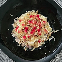 Орехи измельчите, выложите на салат. Украсьте гранатом.