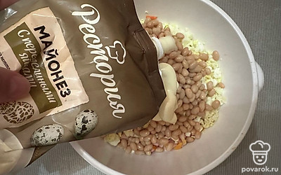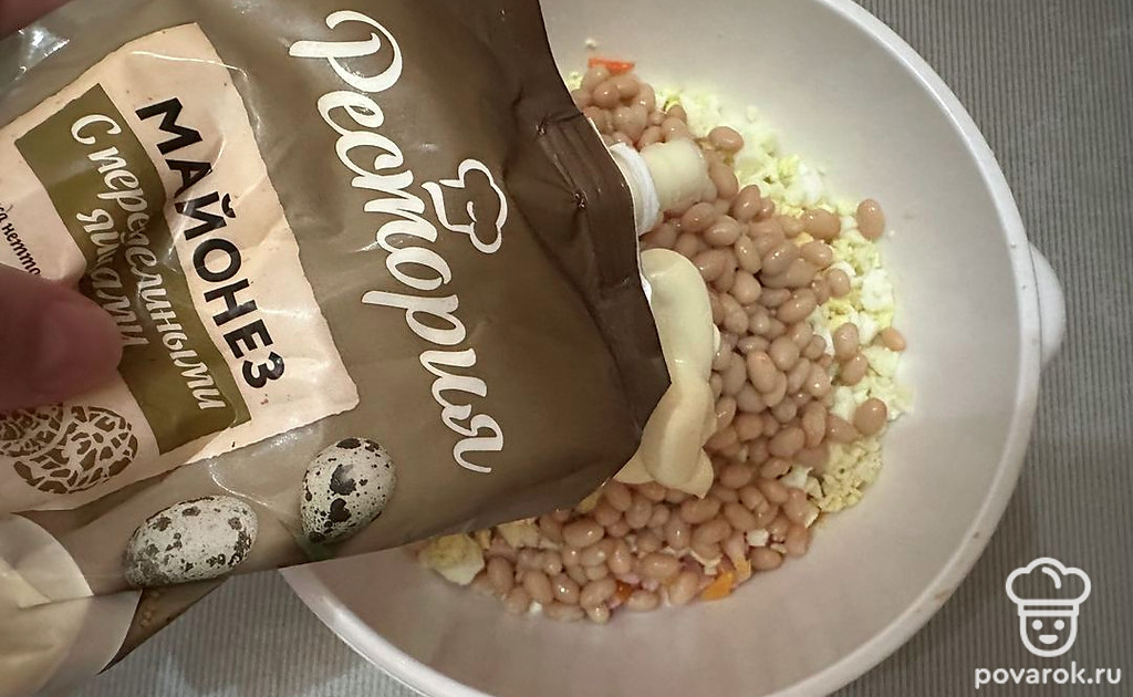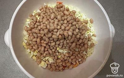 С консервированной фасоли слейте жидкость. Фасоль добавьте к остальным ингредиентам.