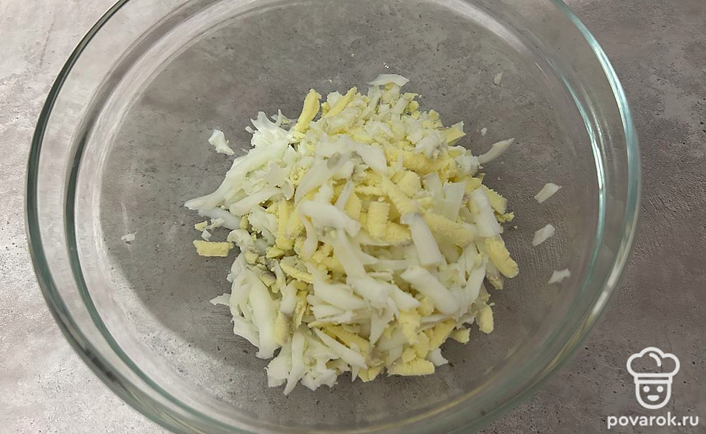 Свеклу натрите на мелкой терке и слегка отожмите, чтобы убрать лишнюю жидкость. Покройте наш салат.