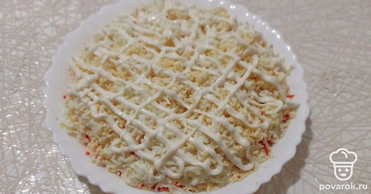 Последний слой — это яйца, измельченные на терке.