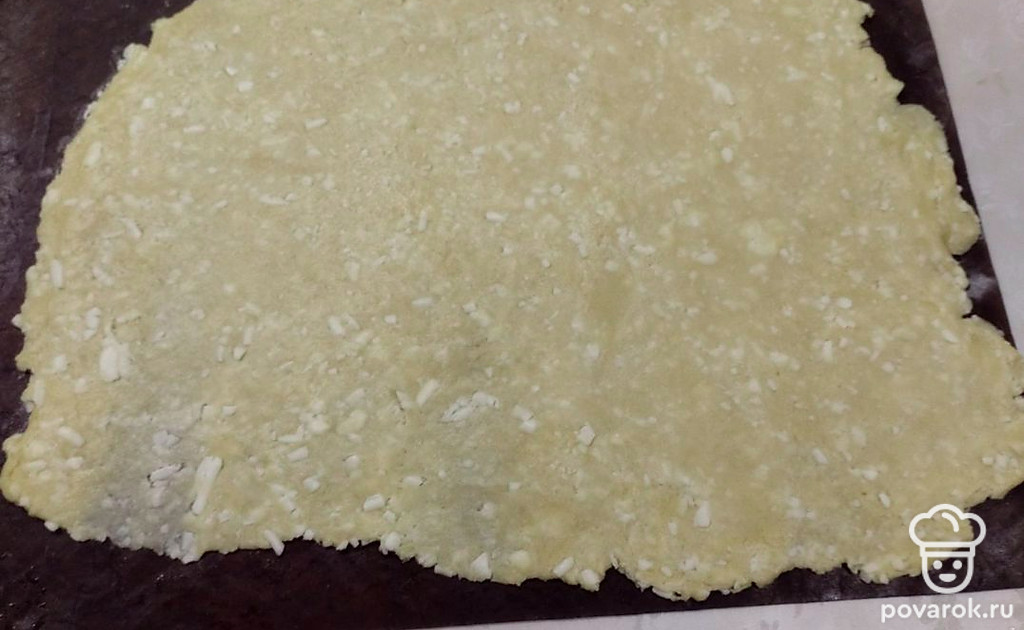 Добавьте разрыхлитель, муку и замесите тесто. Уберите его в морозилку на 15 минут.