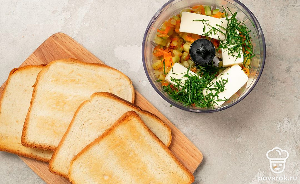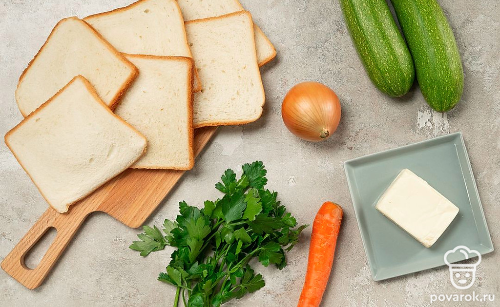 Тост с кабачком — очень нежная закуска, приготовленная на основе измельченных овощей и плавленого сыра. А дополняет блюдо свежая зелень, делая его более сочным. Аппетитные кабачки прекрасно гармонируют с луком и морковью и делают блюдо не только вкусным, но еще и очень питательным. Зелень петрушки можно заменить кинзой. В таком случае блюдо приобретет приятный пряный аромат.