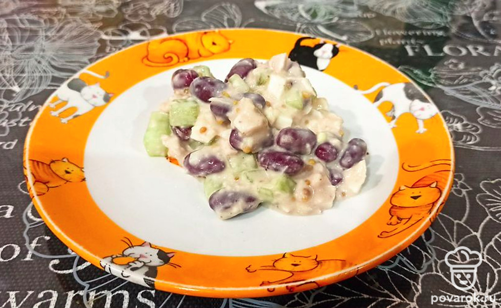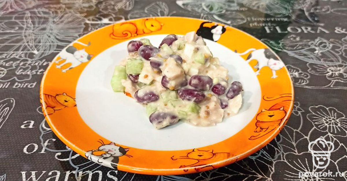 Салат с красной фасолью, куриной грудкой и дижонской горчицей