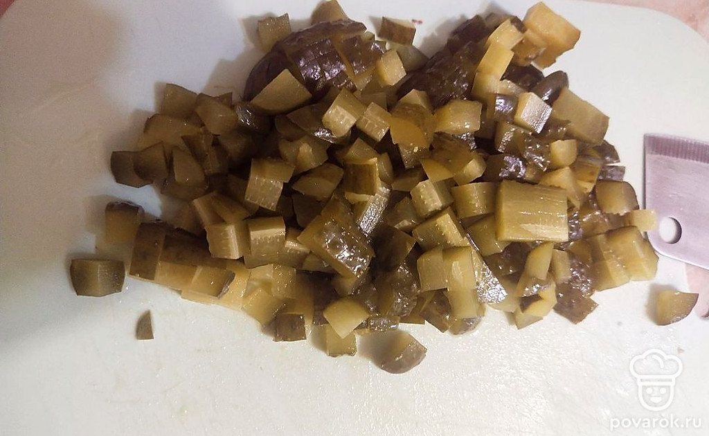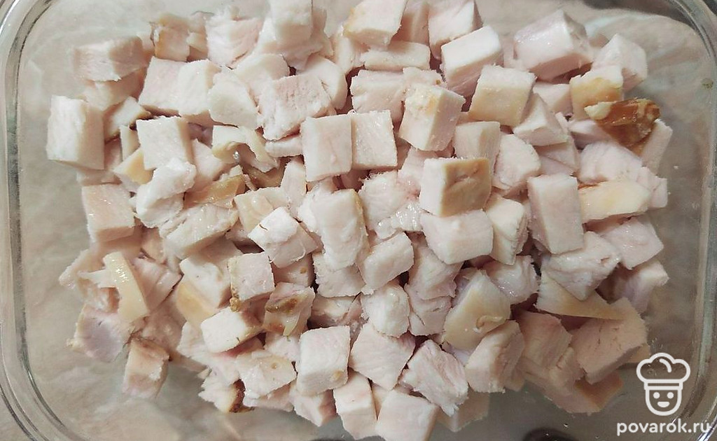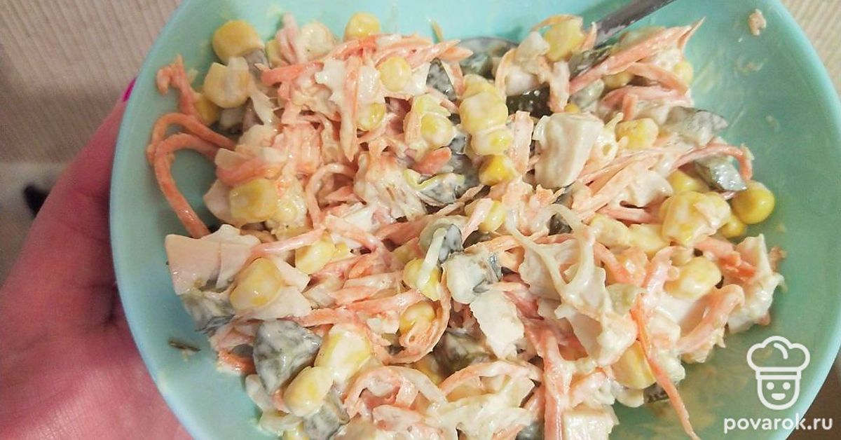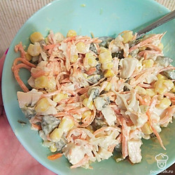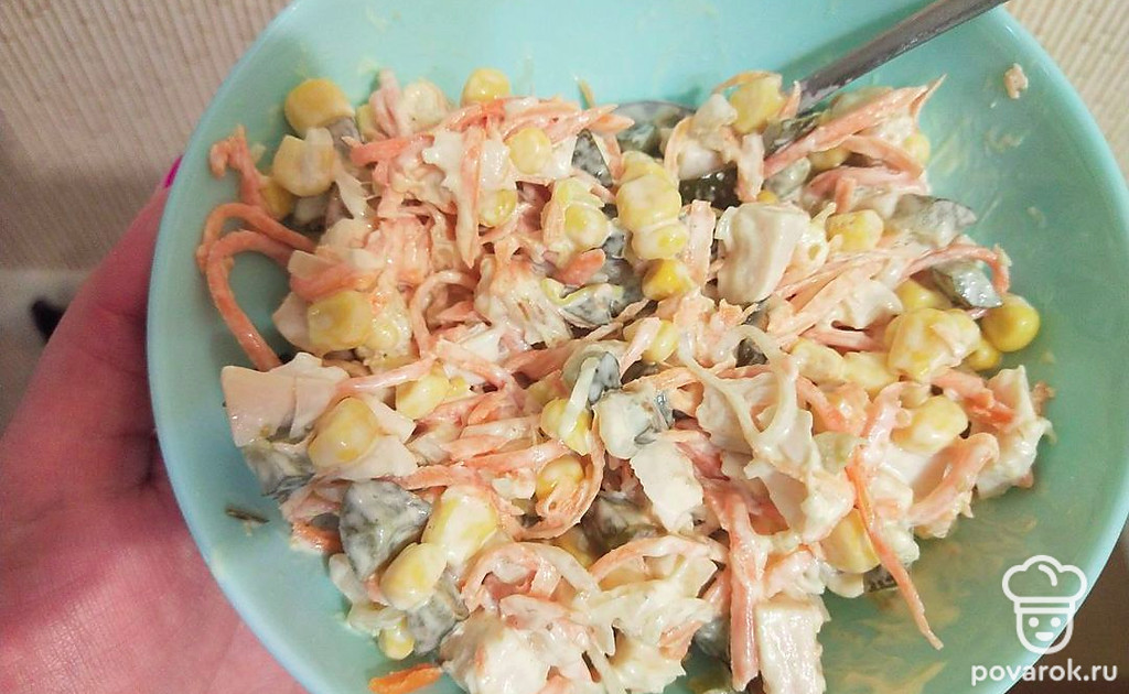 Салат с копченой курицей, корейской морковью и солеными огурцами