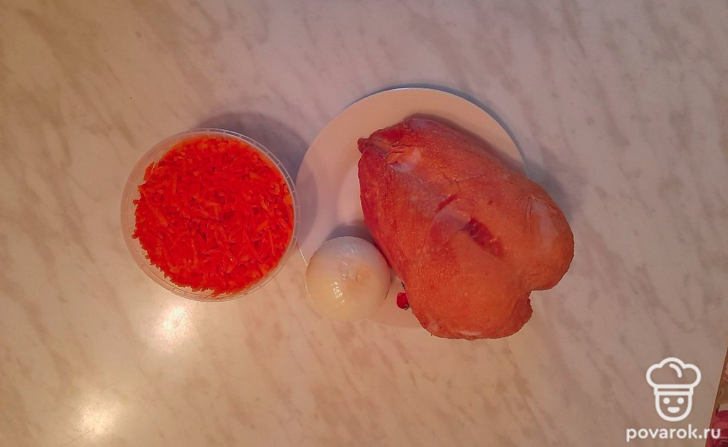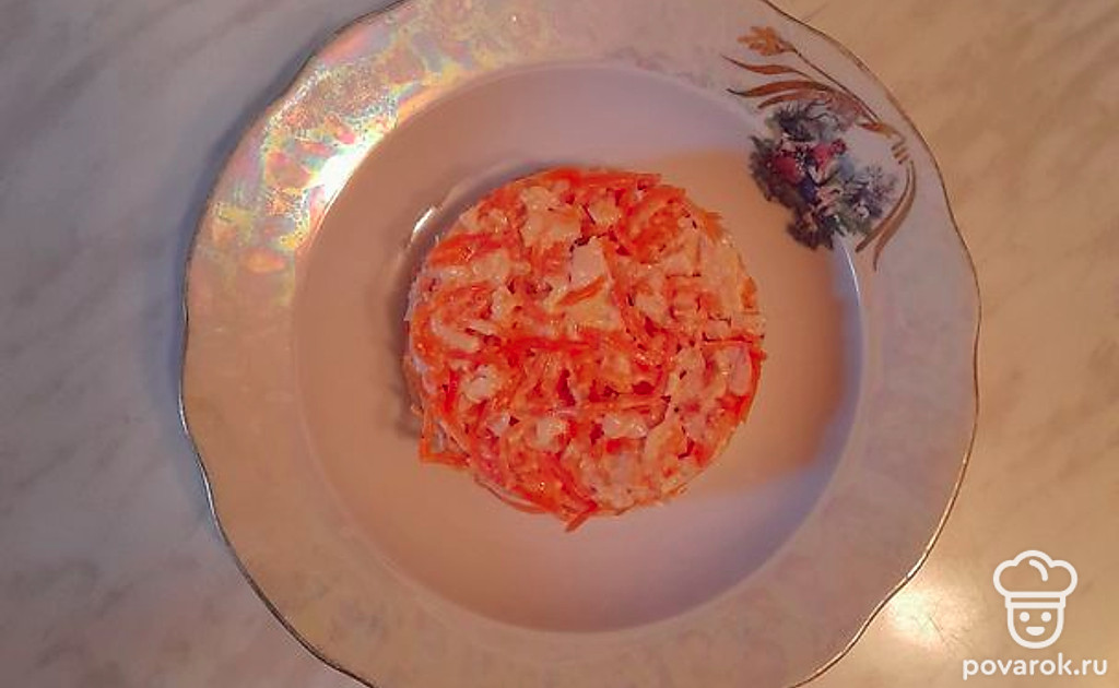 Салат с копченой курицей, корейской морковью и луком