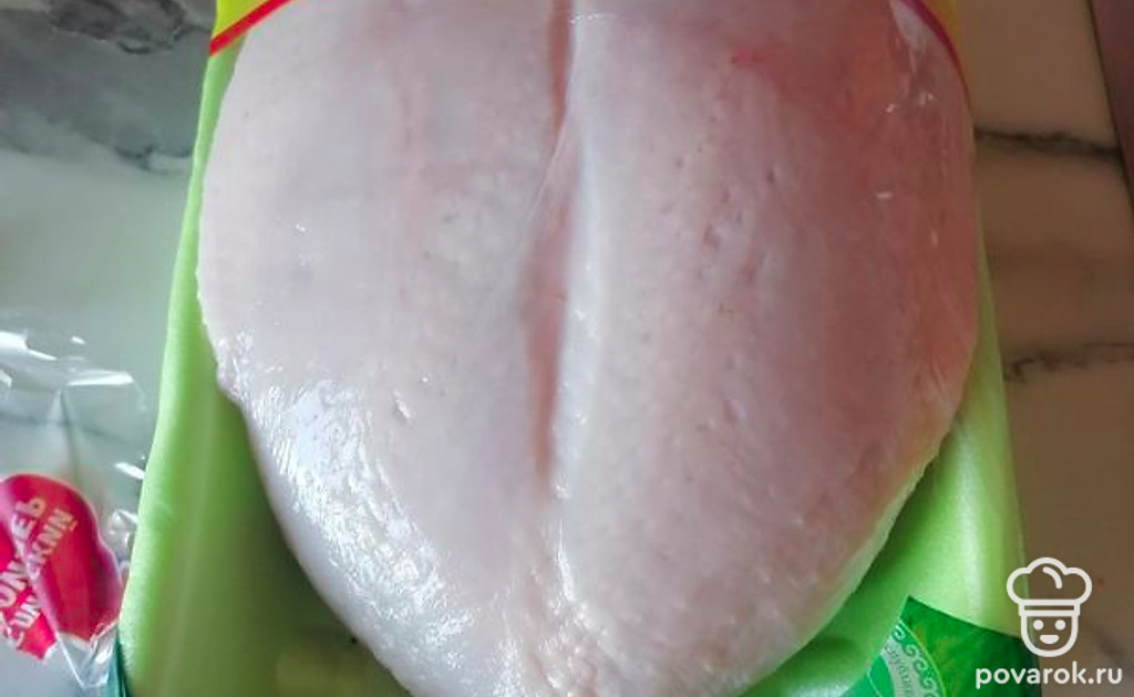 Берем грудку. Лучше брать небольшую. Режем ее, отделяем мясо от костей.