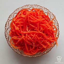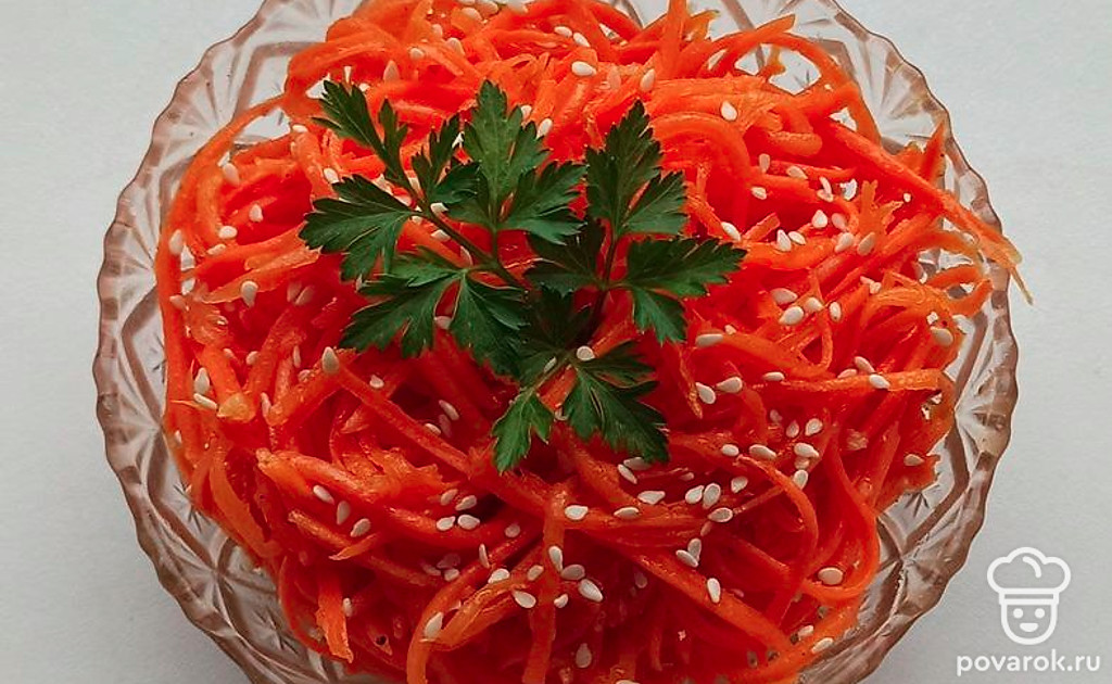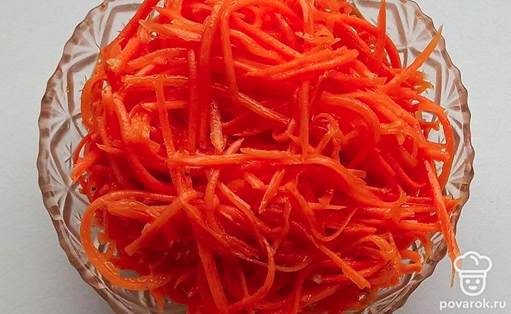 По классике корейскую морковь принято относить к острым закускам. Однако, в азиатских странах ее нередко готовят в качестве гарнира к блюдам из мяса. Калорийность корейской моркови составляет 121 килокалорию на 100 грамм. Морковь по-корейски считается еще и крайне полезным блюдом, так как при ее употреблении выделяется желудочный сок, который укрепляет стенки сосудов. Не стоит забывать, что морковь еще и улучшает зрение, что тоже является ее неотъемлемым плюсом. Стоит также отметить, что чрезмерное употребление этого острого лакомства может привести к аллергии и нанести большой вред желудочно-кишечному тракту.