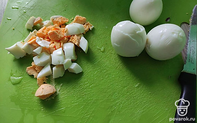 Нарезаем яйцо крупными кубиками.