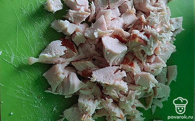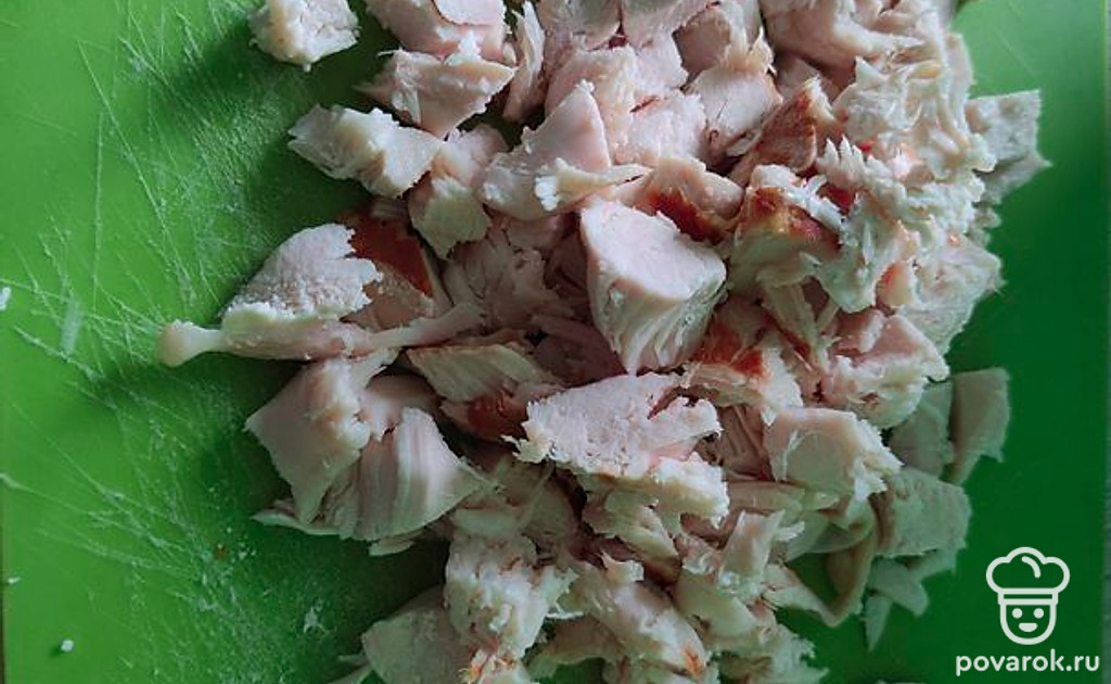 Нарезаем курицу кубиками.