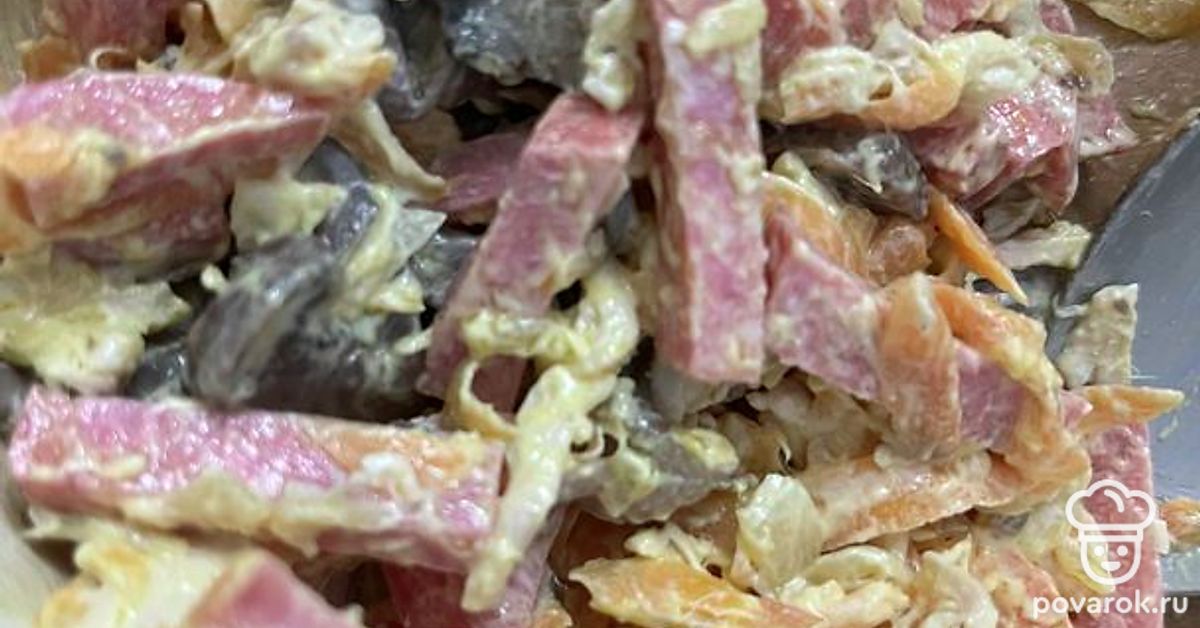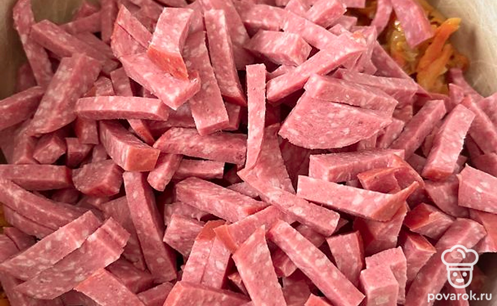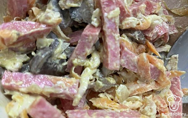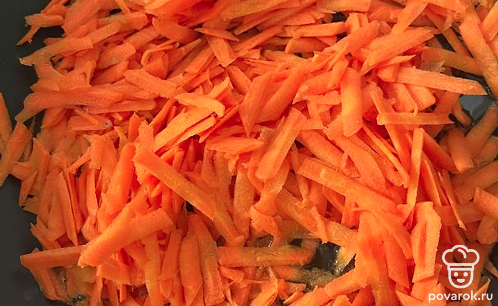 Начинаем собирать салат. Морковь и лук отправляем в салатник.