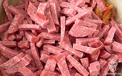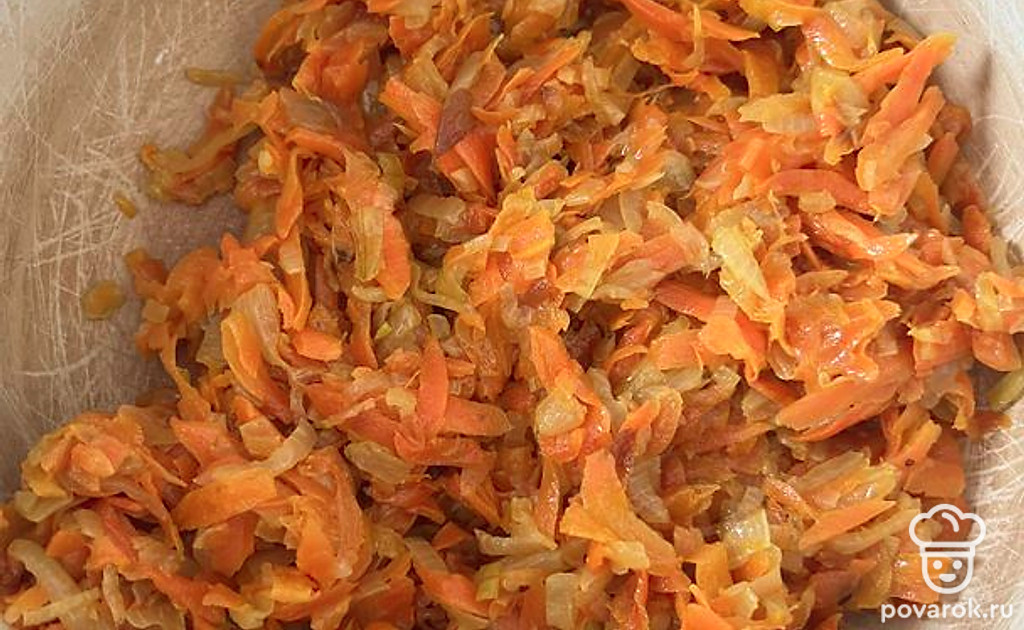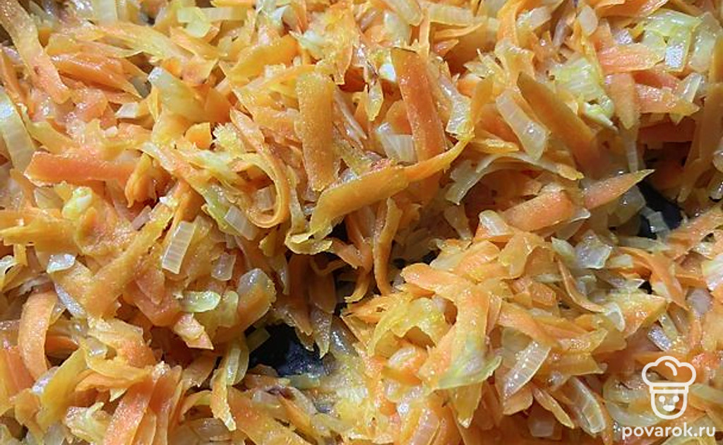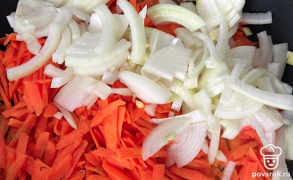 Лук очищаем, мелко нарезаем и добавляем к моркови.