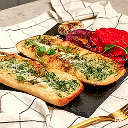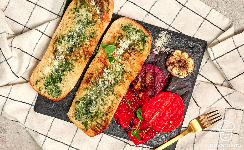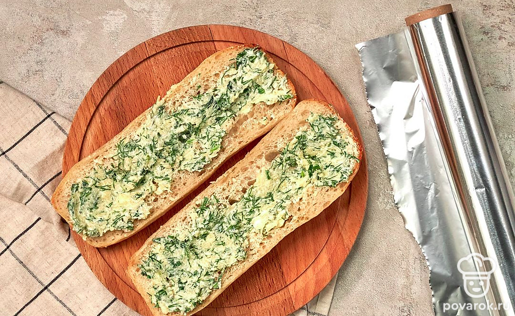 Багет на гриле — идея для пикника на природе. Чтобы хлебные "шашлыки" получились более сочными и сытными, в начинку можно добавить сыр, зелень и чеснок. Можно взять один сорт сыра или скомбинировать их, например, сулугуни и пармезан. Зелень подойдет любая: укроп, зеленый лук, петрушка или базилик. Если нет свежей зелени, ее можно заменить сушеной. Чтобы при жарке багетов начинка оставалась на месте, их нужно завернуть в фольгу.