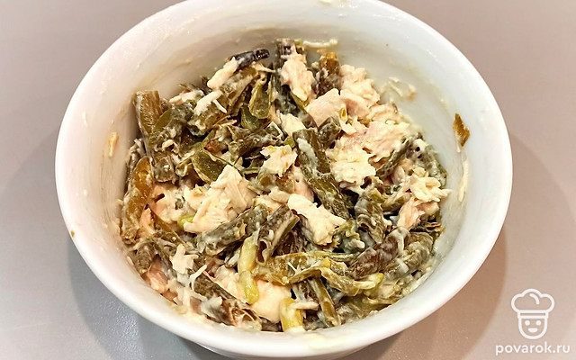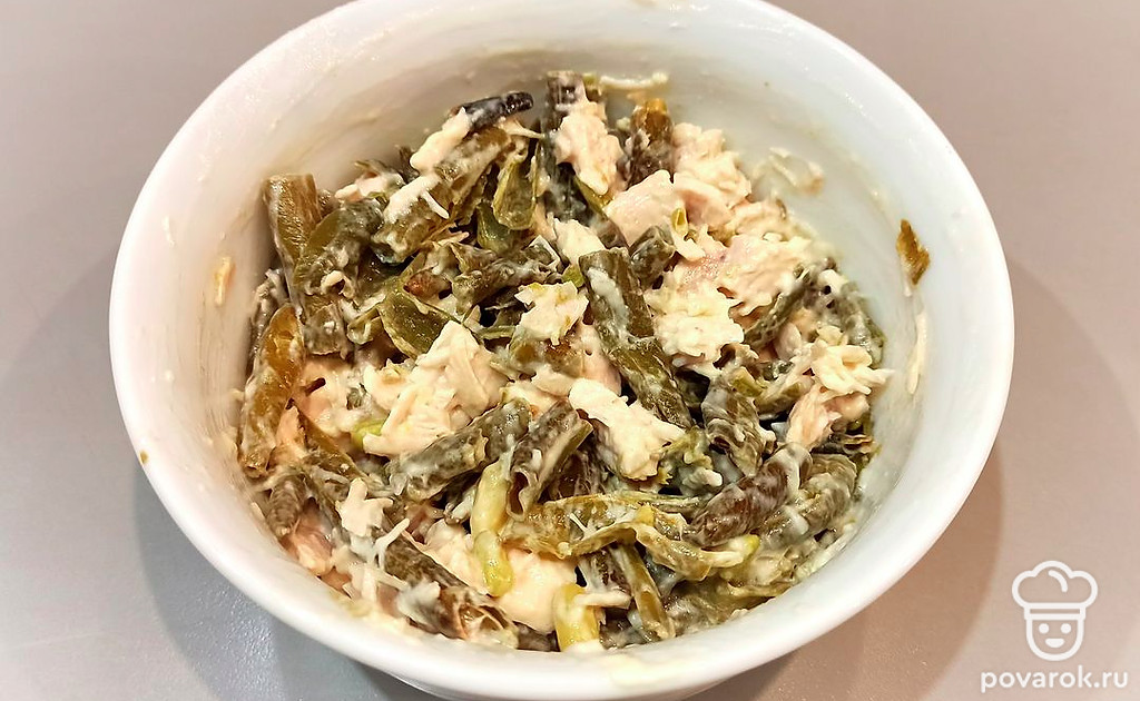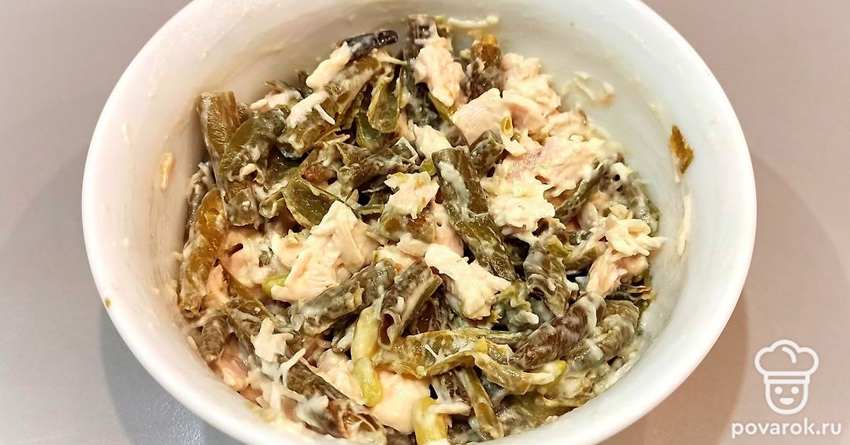 Салат из зеленой фасоли с курицей и чесноком
