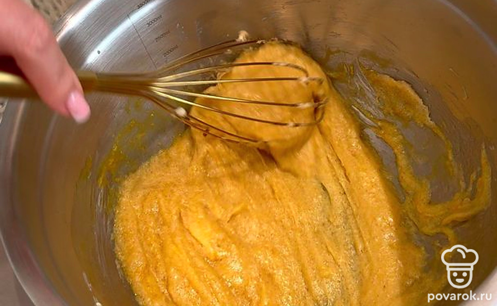 В полученную пасту добавьте куриное яйцо и ванилин, перемешайте еще раз до однородности.