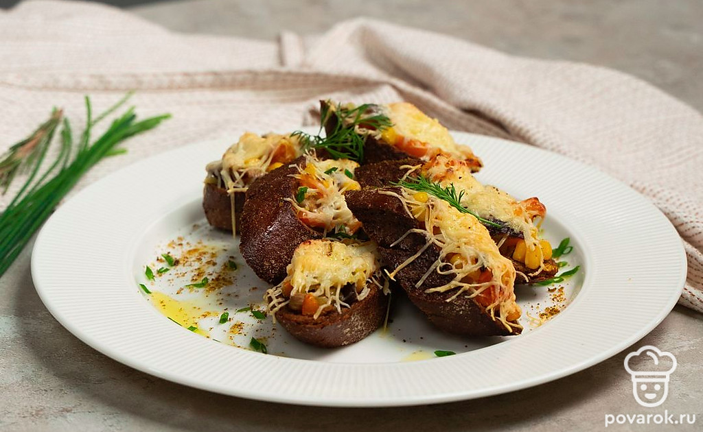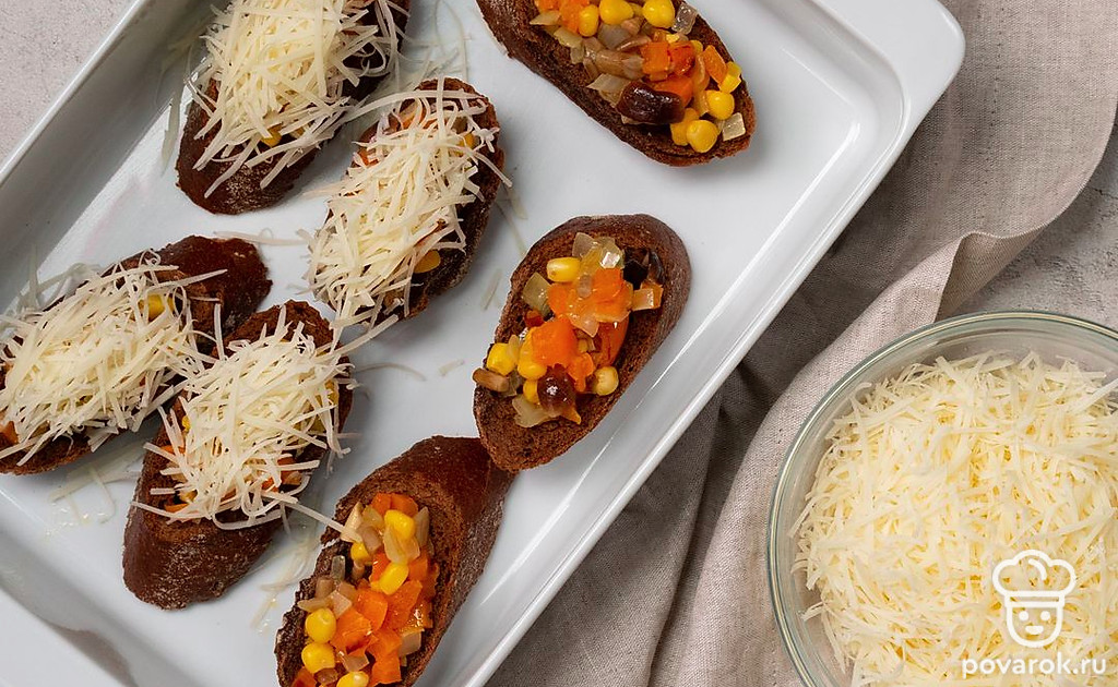 Багет с грибами — хорошо известная, но от этого не менее вкусная закуска. Грибы жарятся отдельно с луком и болгарском перцем, затем выкладываются на кусочки багета, посыпаются тертым сыром и отправляются в духовку. В процессе запекания багет покрывается хрустящей корочкой, а сыр тает и пропитывает своим ароматом начинку.