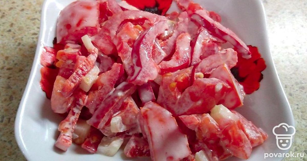 Подавайте салат сразу, пока овощи не выделили сок. Можно посыпать свежей зеленью.