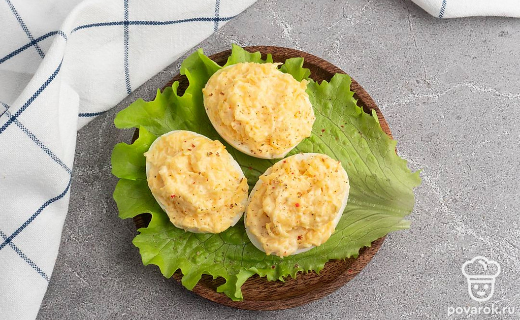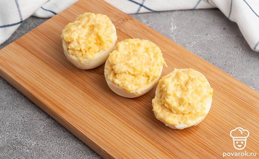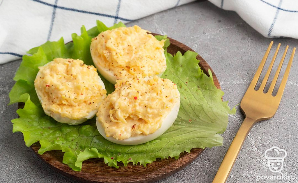 Яйца фаршированные сыром и желтком — это приятная в приготовлении закуска, которая отлично подойдет тем, кто не хочет испортить фигуру за праздничным застольем. В ее составе минимум калорий и вредных для фигуры ингредиентов. Она очень легкая для желудка и восхитительна на вкус. Яичные закуски — это один из лучших вариантов для застолья, они сытные, помогают быстро победить голод, при этом не наев много лишних килограммов.