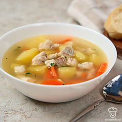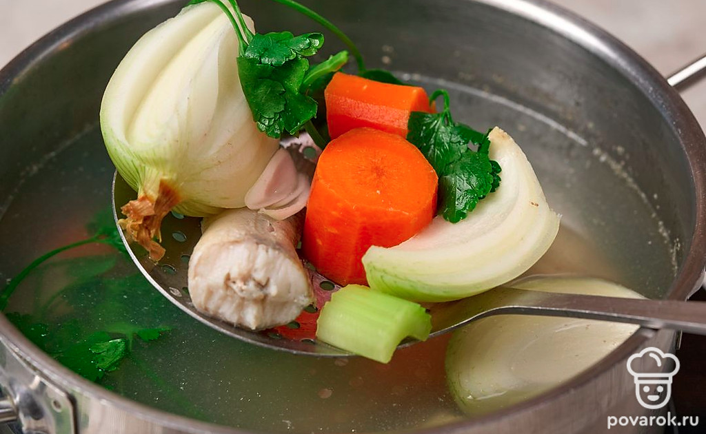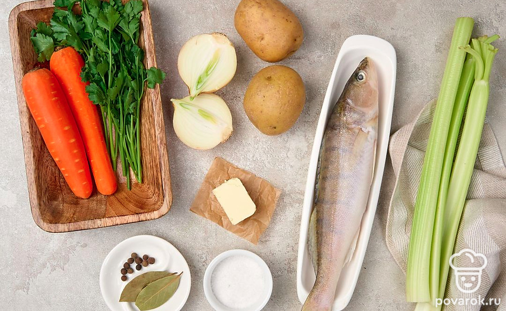 Классическую уху принято готовить из минимального набора ингредиентов. Как правило, это рыба и овощи. Мы решили разнообразить уху и добавили к ней корень сельдерея, немного зелени и ароматные пряности. Блюдо осталось таким же легким, но при этом стало более вкусным. Чтобы уха получилась красивой и аппетитной, лучше брать рыбу, которая дает прозрачный бульон. В нашем случае это судак, но также подойдет карась или окунь.