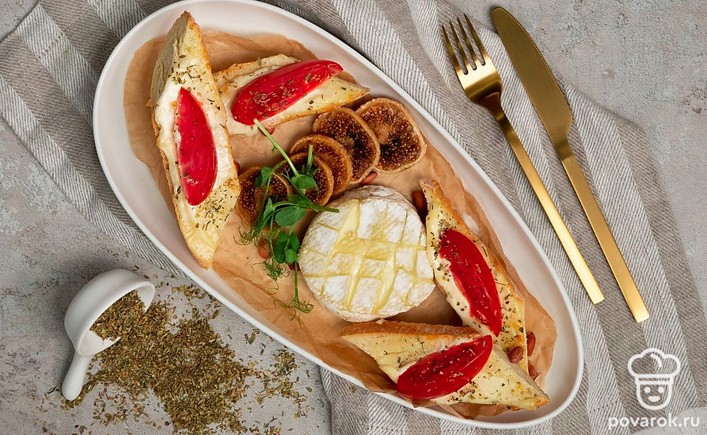 Из багета можно сделать множество блюд — даже фондю, если запечь багет с сыром. Один из наиболее подходящих для этого сыров — камамбер, мягкий и достаточно жирный сыр с тонкой белой плесенью и нежным сливочным вкусом. Багет с камамбером станет весьма оригинальным и интересным вариантом закуски для дружеской вечеринки с вином.