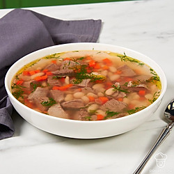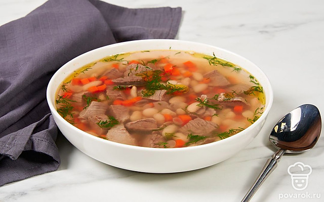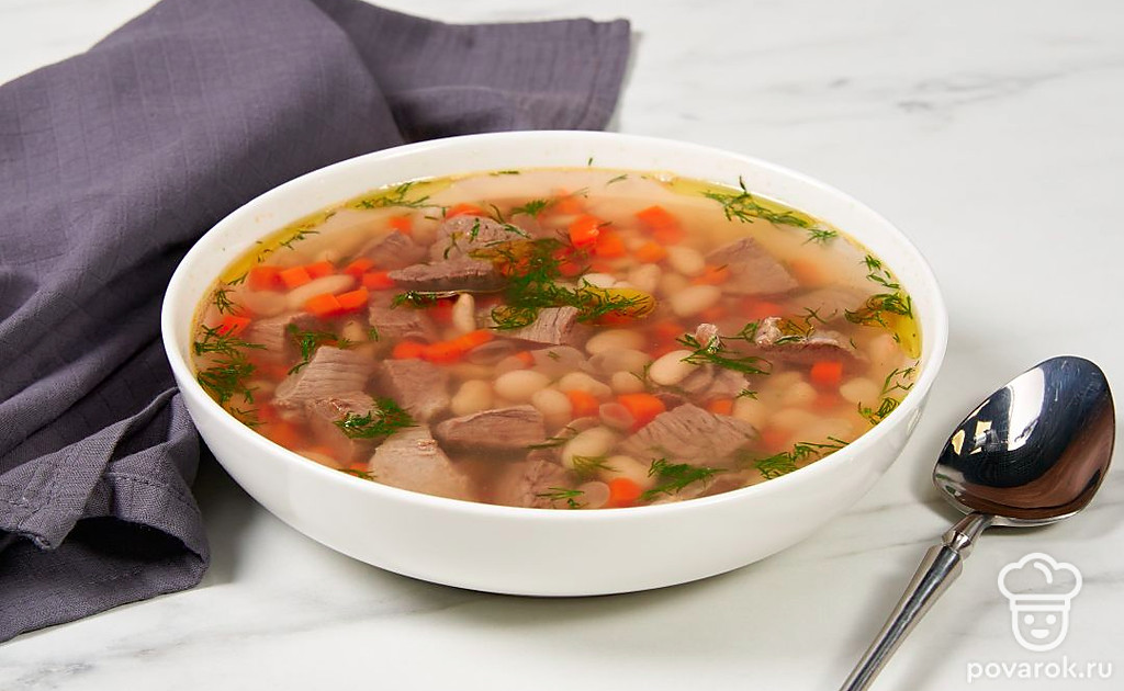 Из белой фасоли можно приготовить аппетитный и ароматный суп. Времени на него уйдет немало, но блюдо получится очень вкусным и наваристым. Помимо фасоли мы также добавили в суп немного говядины. Если у вас ее нет, можно заменить на курицу или индейку. Если хотите сократить время приготовления блюда, замените сухую фасоль на консервированную. Ее не придется долго варить. Такой суп тоже получится вкусным, хотя и будет чуть отличаться от оригинального.