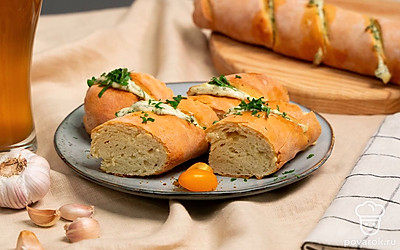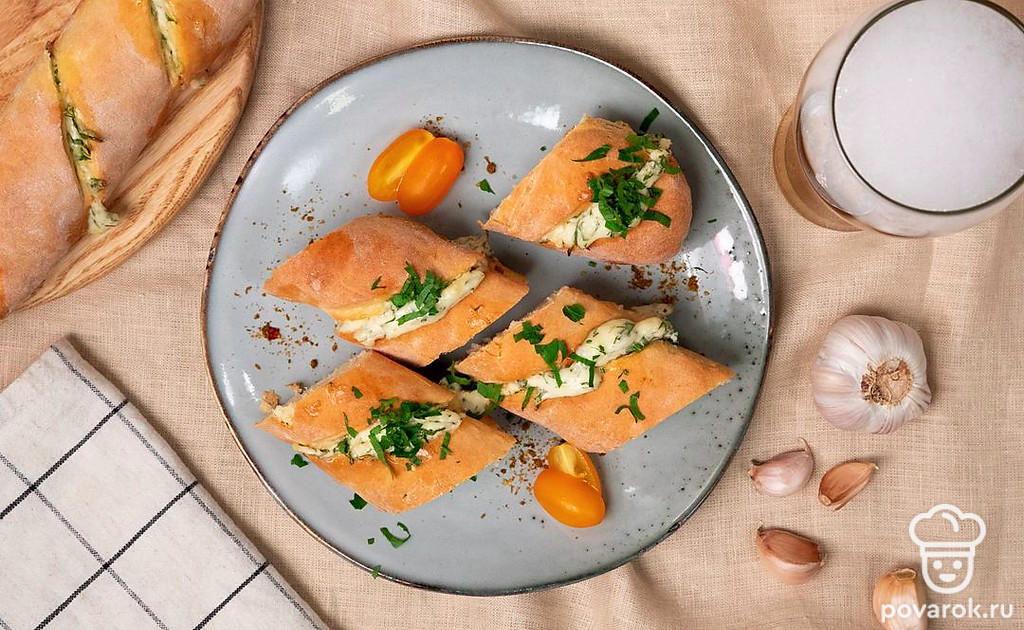 Даже такому пресноватому хлебу, как багет, можно добавить пикантность с помощью чеснока, сделав из него соус. К тому же чеснок, как известно, является природным антибиотиком благодаря содержанию фитонцидов. Поэтому древние египтяне включали его в рацион людей, занятых физическим трудом. В нашем понимании чеснок — это острая приправа, а в Азии из него делают сладкий десерт, заквашивая его при высоких температурах. Багет с чесночным соусом хорошо сочетается с творожным сыром, помидорами и зеленью.