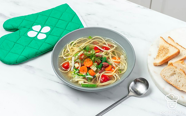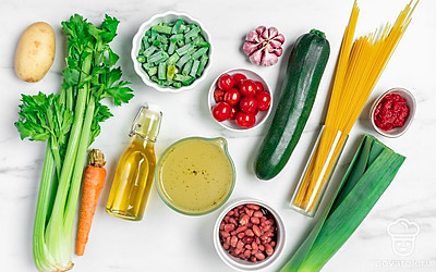 Минестроне — самый популярный итальянский суп. Изначально он был блюдом бедняков. Мяса в нем не было, незажиточные люди обходились овощами, а для сытости клали в суп фасоль и картошку. Считалось, что блюдо должно настояться хотя бы сутки. Готовили его всегда в большой кастрюле, что и заключено в названии. Минестроне переводится как «большой суп». Именно этот яство называют любимым блюдом Леонардо Да Винчи.